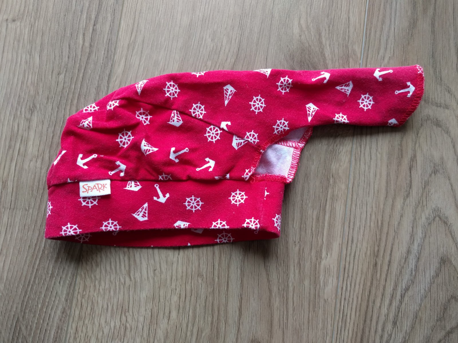 Elastická čiapko-šatka v pirátskom štýle. 96% bavlna, 4% elastan. Značka Spark z ČR, vo veľmi peknom stave. Praktická, vzdušná, na leto. Cena bez pošty.