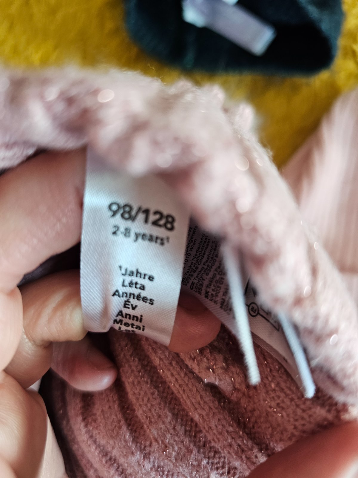 3x ciapka na zimu,na 2 uvedena velkost 98/128, co ke blbost,moja dcerka pri 110 velkosti uz nenatiahla ciapky,preto uvadzam.98, max.104