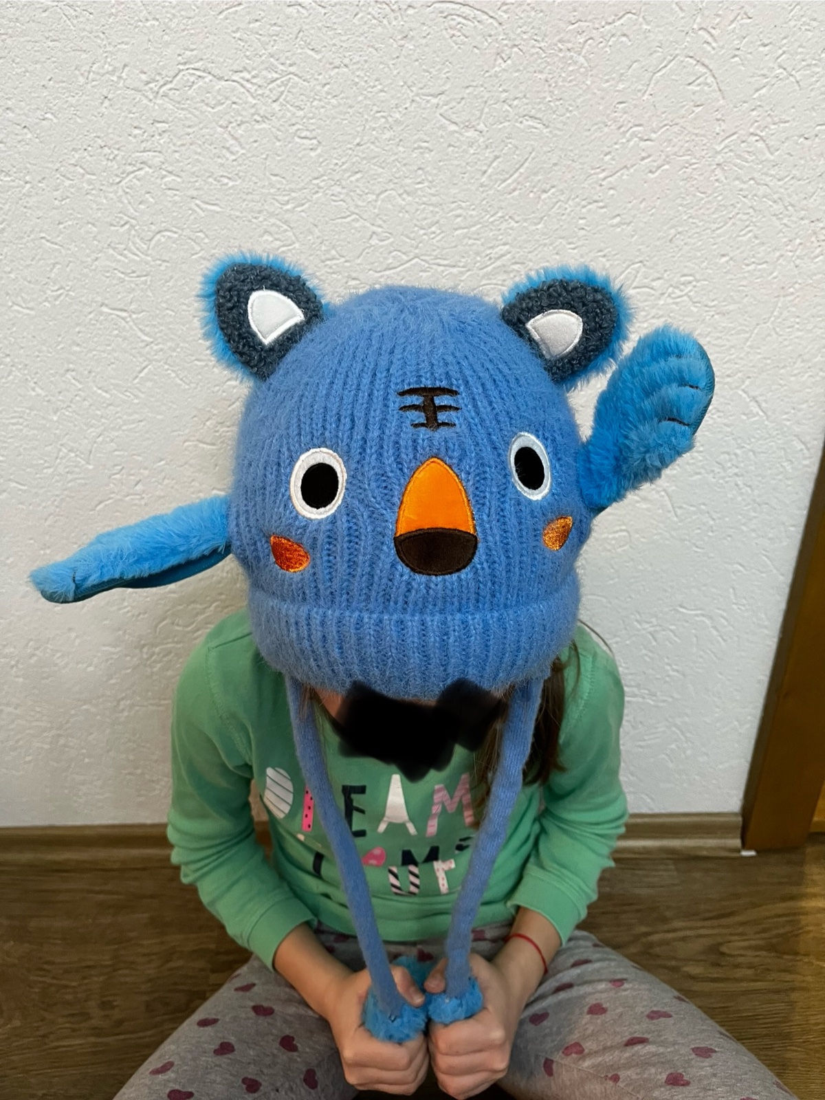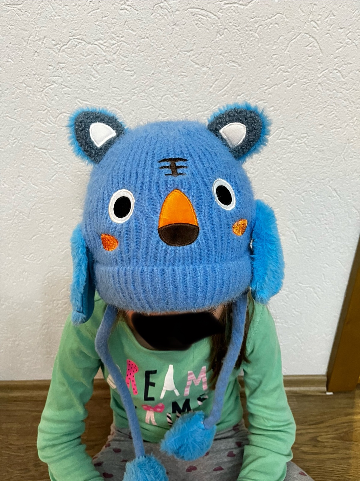 Čiapka vo veľmi peknom stave, oblečená päťkrát, pri stáčanie pumpičky sa uška zdvíhajú dohora, veľkosť 98/104/110