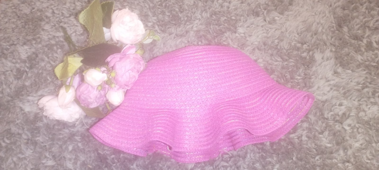 Pekný štýlový klobúk. Výrazné ružovej farby...