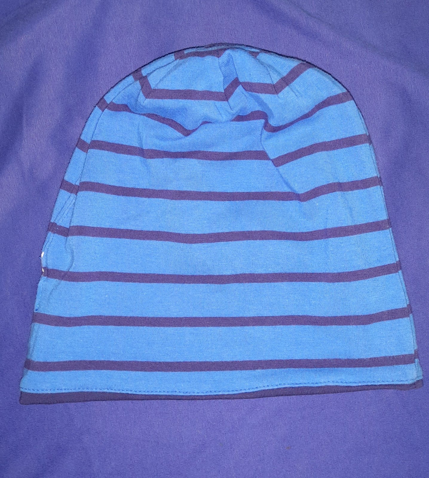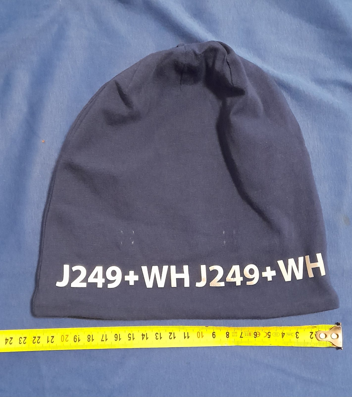 Písmená sú reflexné, tým že sa čiapka na hlave natiahne sú na pár miestach trochu prasknuté. Štítok je odstrihnutý, je to veľkosť, ktorú Tchibo uvádza ako 49-52 cm.