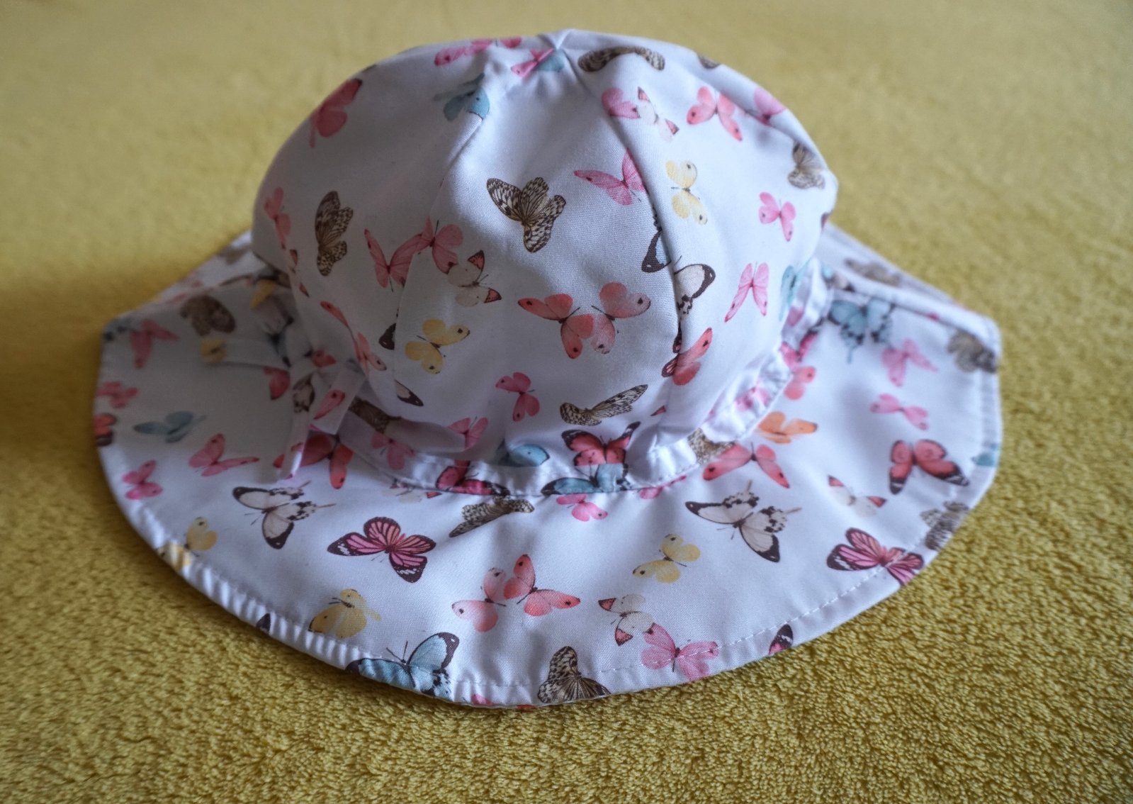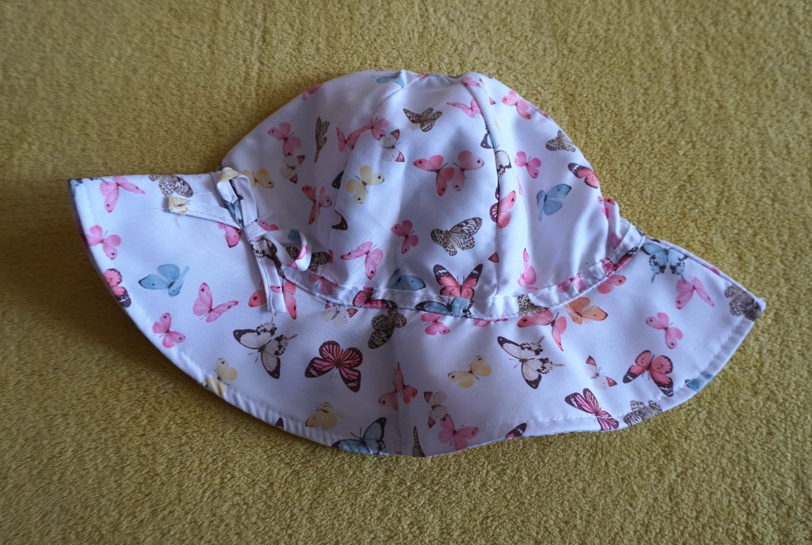 Krásny nový biely klobúk s farebnými motýľmi, značky H&M, veľkosť 122-128. Pre dievčatá. TOP stav, bez poškodení.