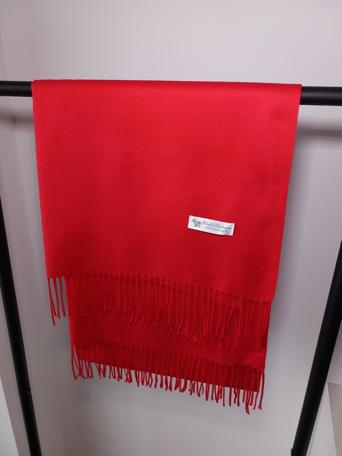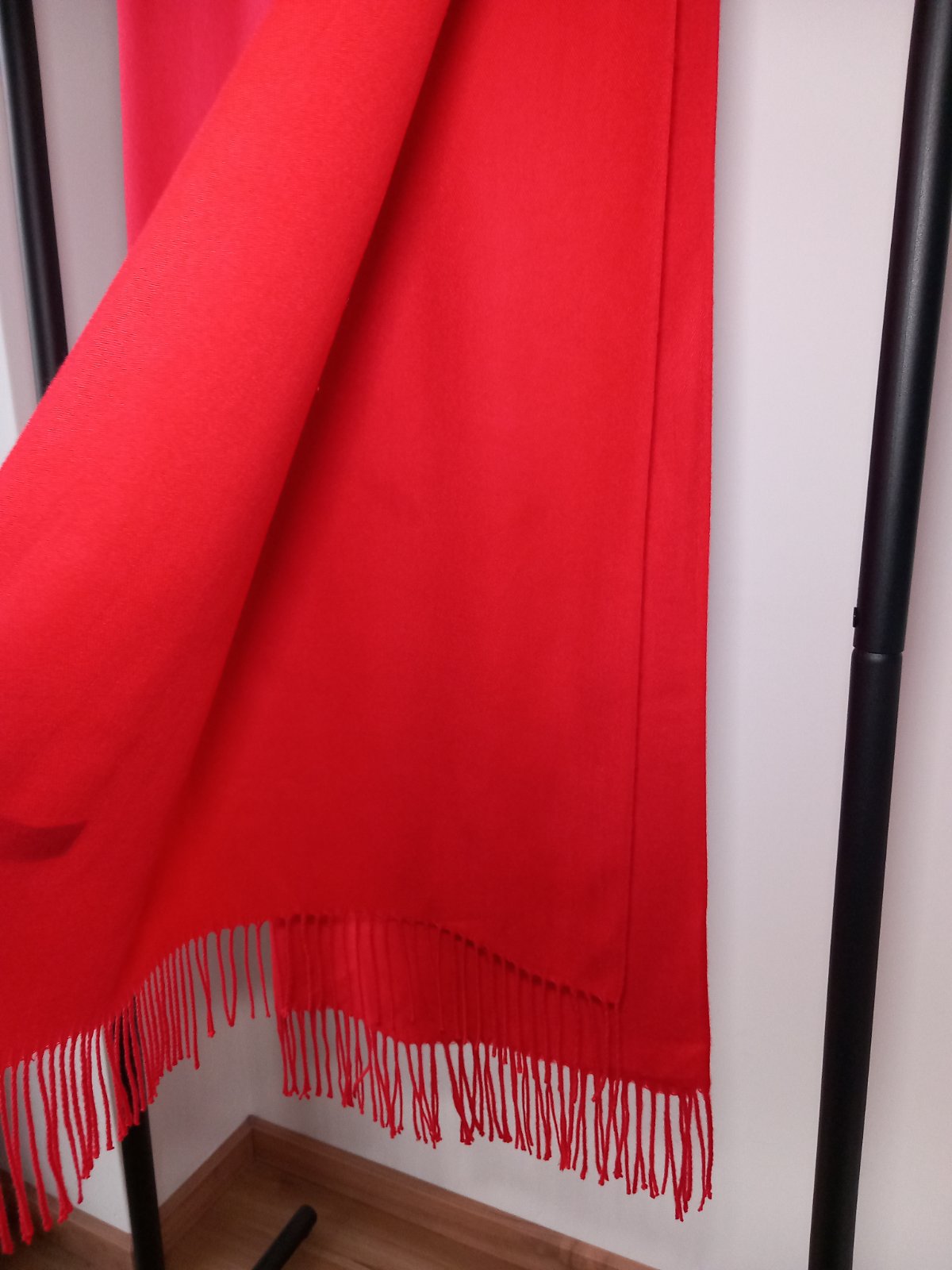Krásna pashmina v žiarivej červenej farbe. Je dokonale jemná, minimalistická a elegantná.