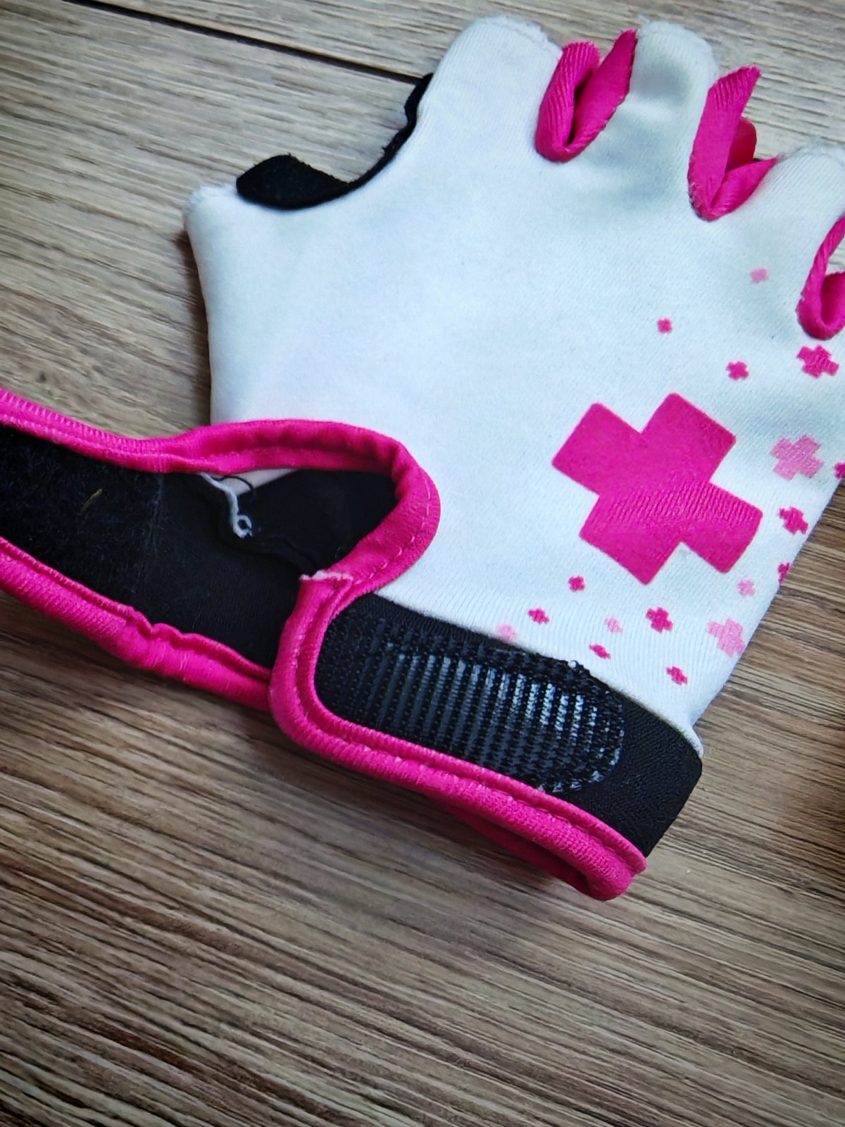 Cyklistické rukavice pre dievčatá, veľkosť cca na 8 rokov. Môže byť aj skôr