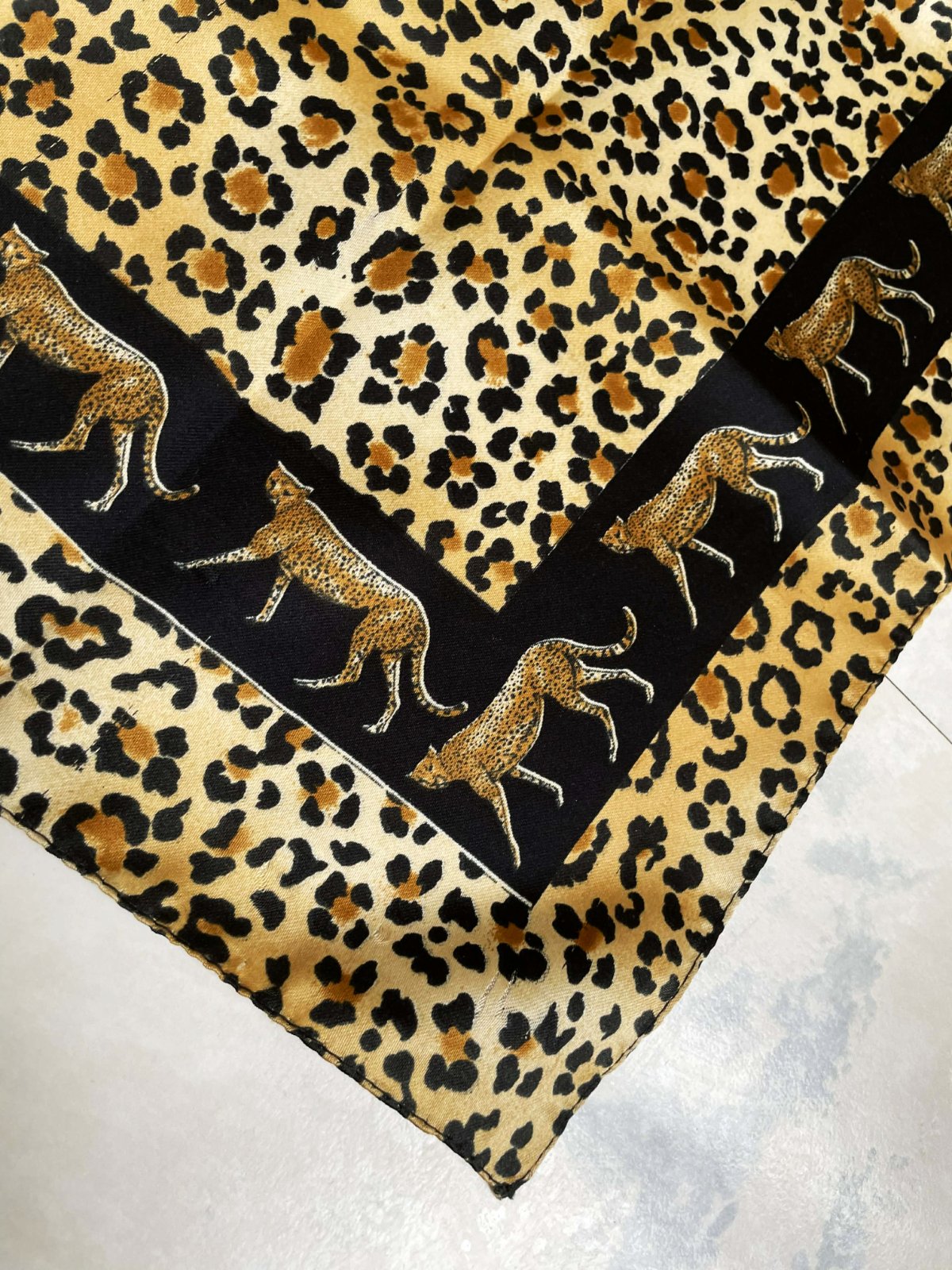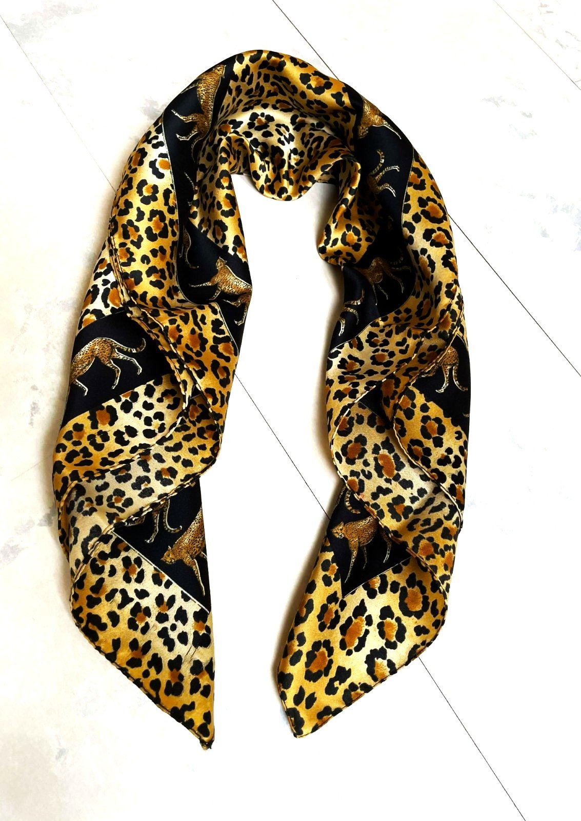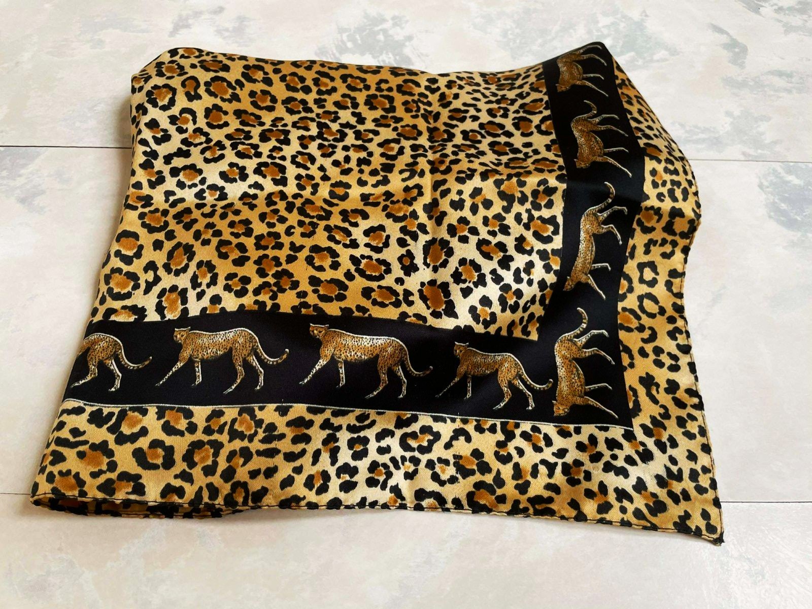 zaujímavá kvalitná šatka v top stave,57 x 57 cm,jemne šmýkľavá, so zvieracím motívom, 100% polyester