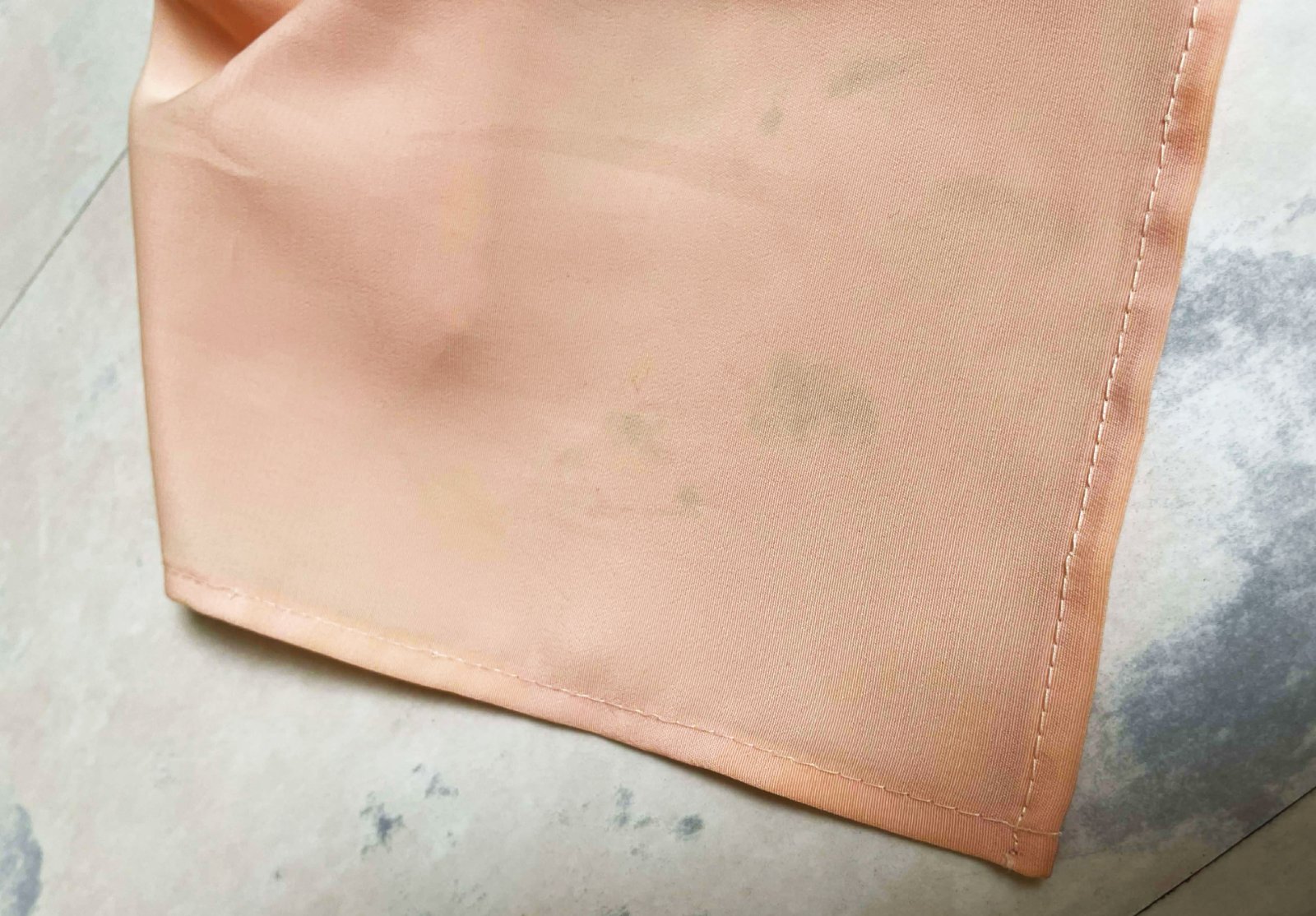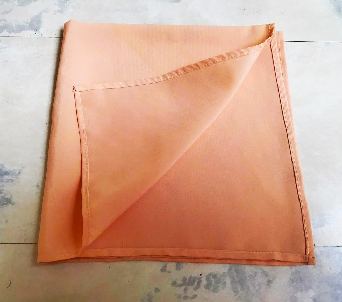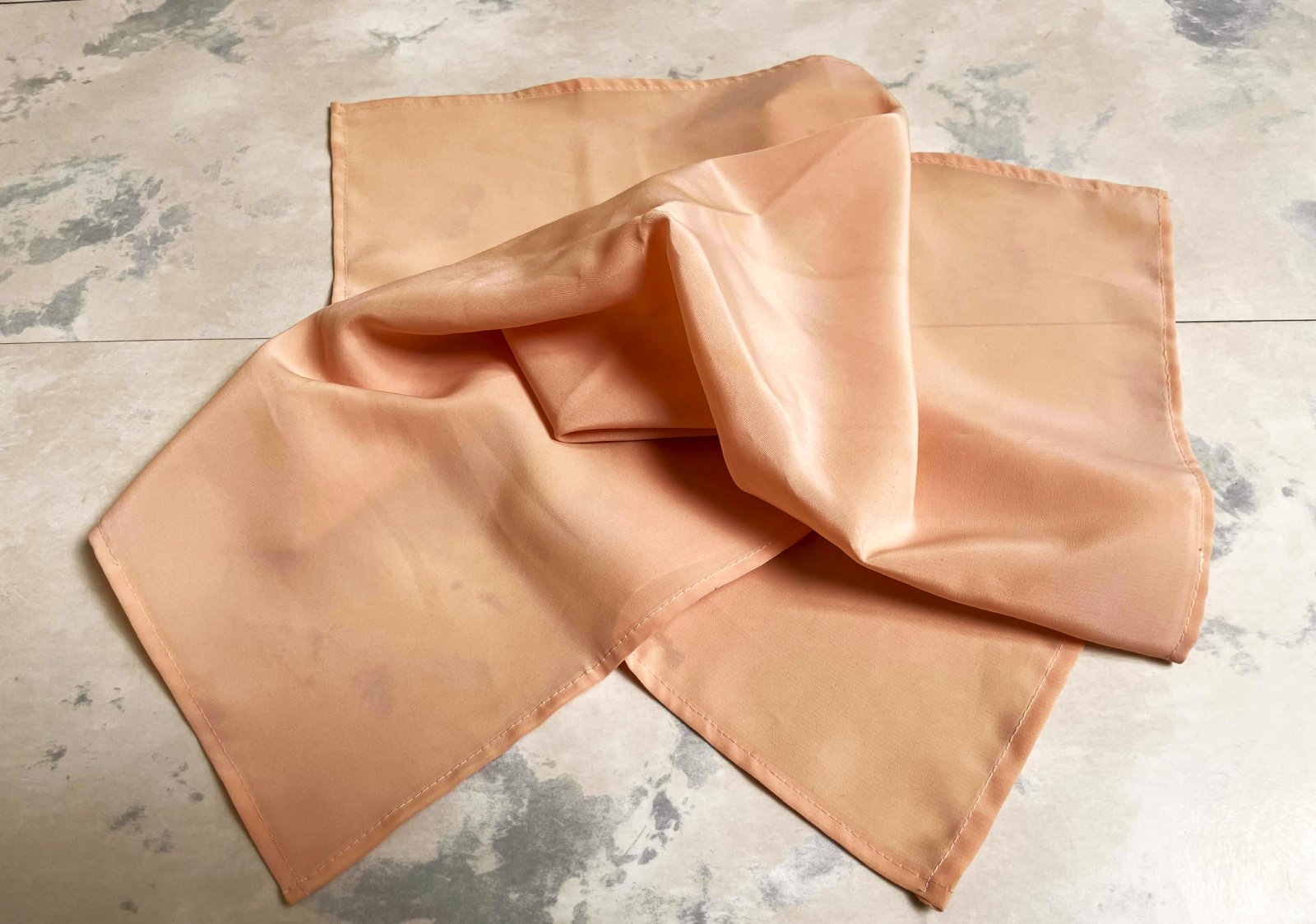 krásna,ľahká šatka okolo krku,jemná púdrovo marhuľová farba,42 x 42 cm,100 % polyester,jemne priesvitná