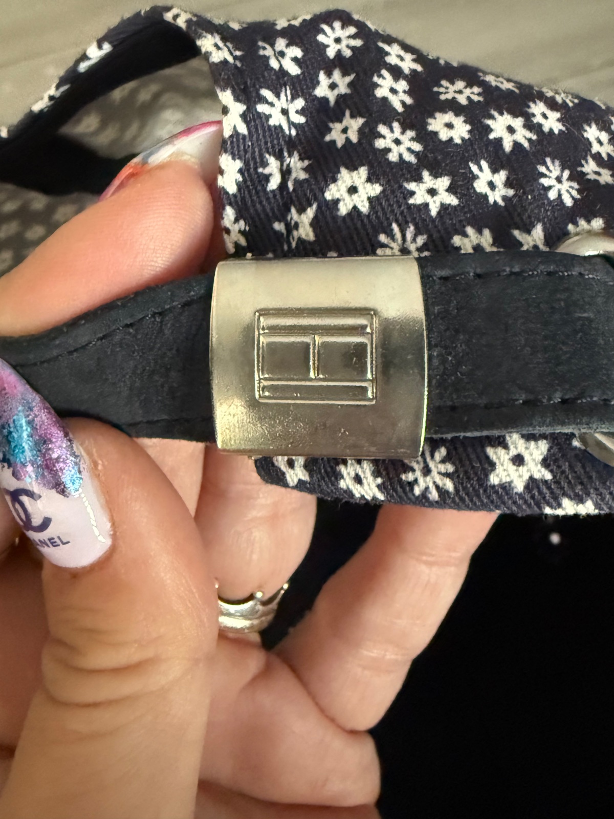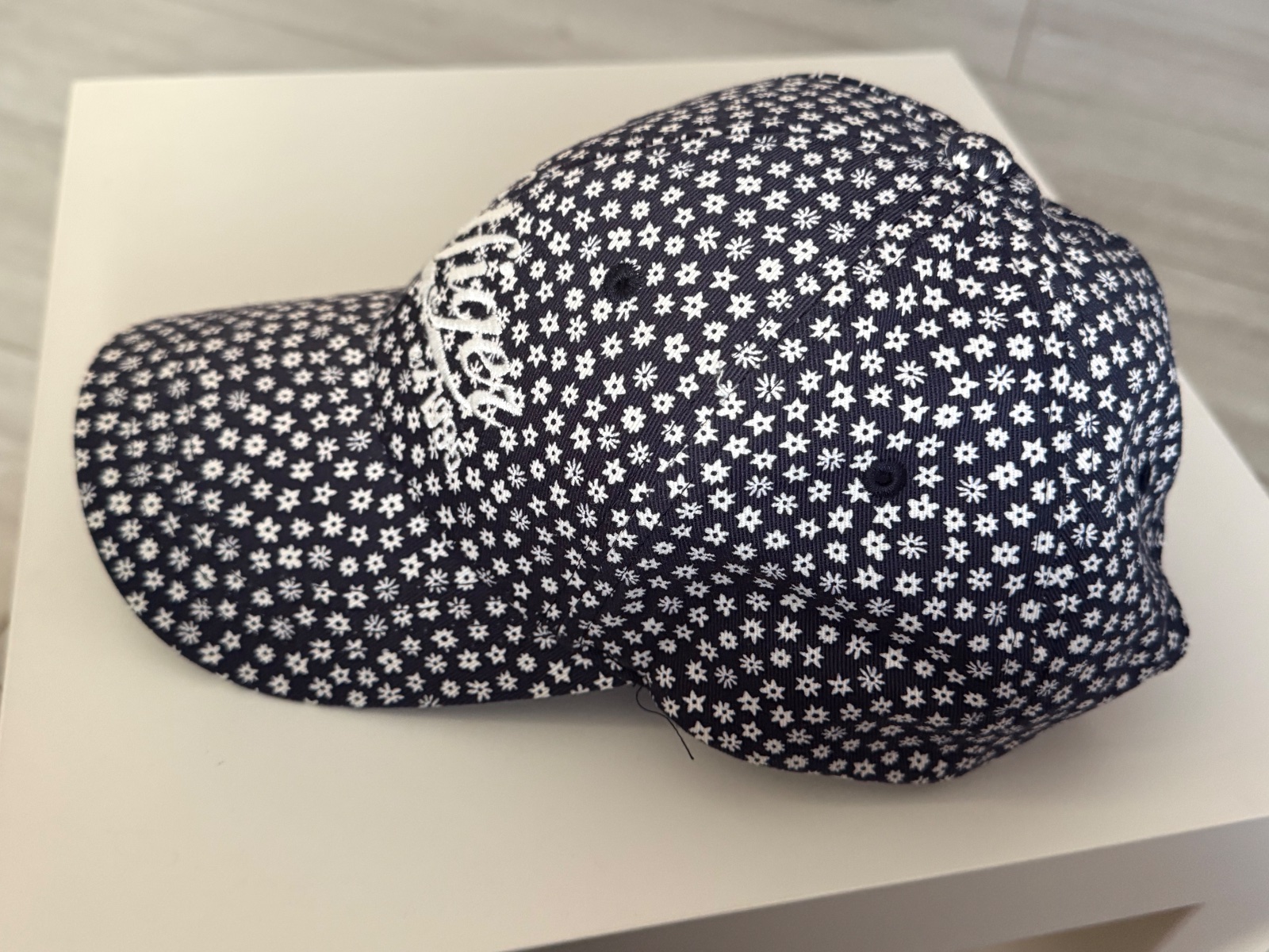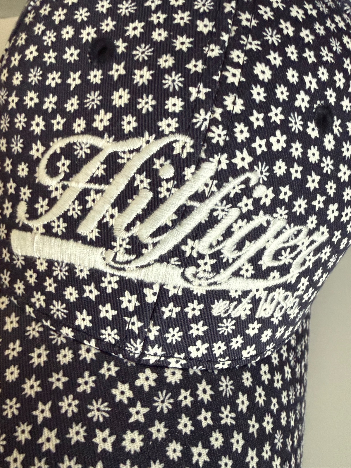 Krásna šiltovka TH. Tmavomodrá farba s bielymi kvietkami. Vpredu vyšité logo, vzadu nastavitelná. Velkosť UNI. Nová, nikdy nenosená.
