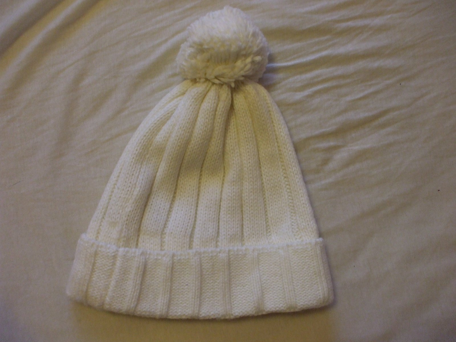 Krásna snehobiela čiapka. Bola nosená asi 5x, lebo som kúpila malú a hneď začala tlačiť. Vyteplená cez čelo a ušká, úplne super.