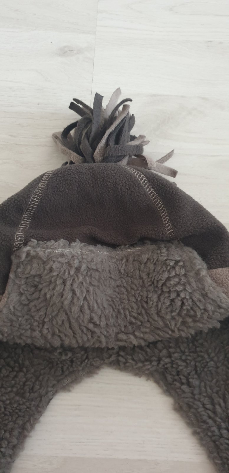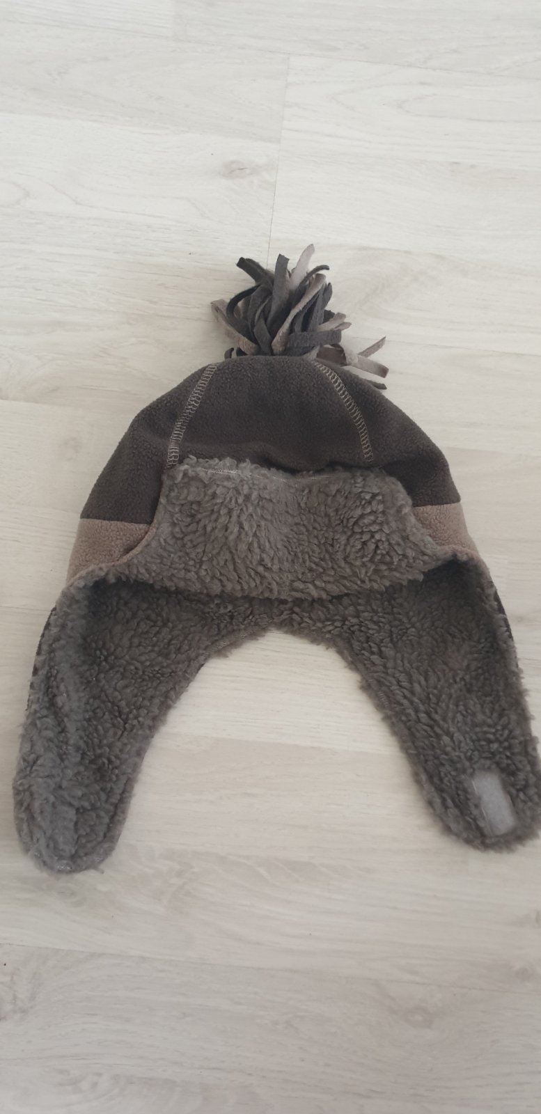 Menšestrová čiapka s vnútornou kožuštekom. Čiapka má klapky na ušká a udržiava ich v teple. Veľkosť 12-18 mesiacov.