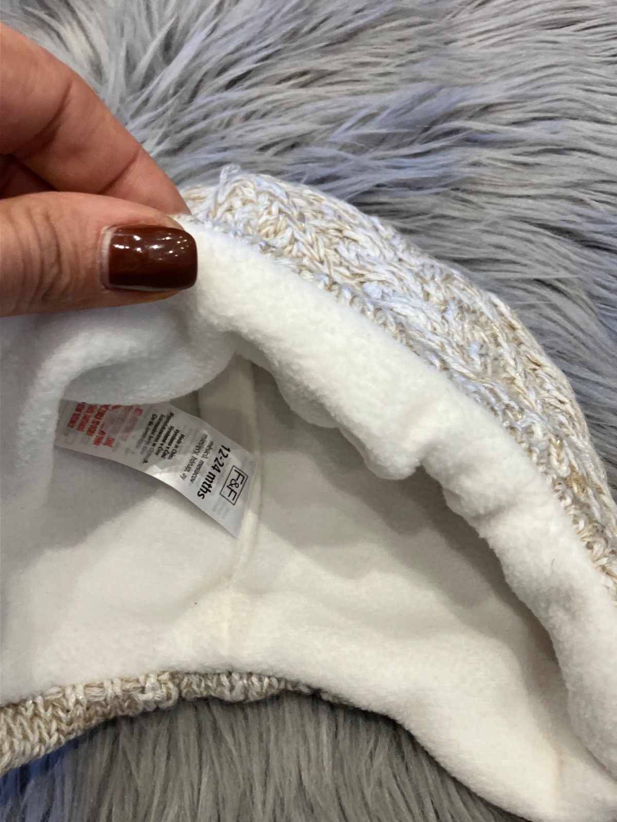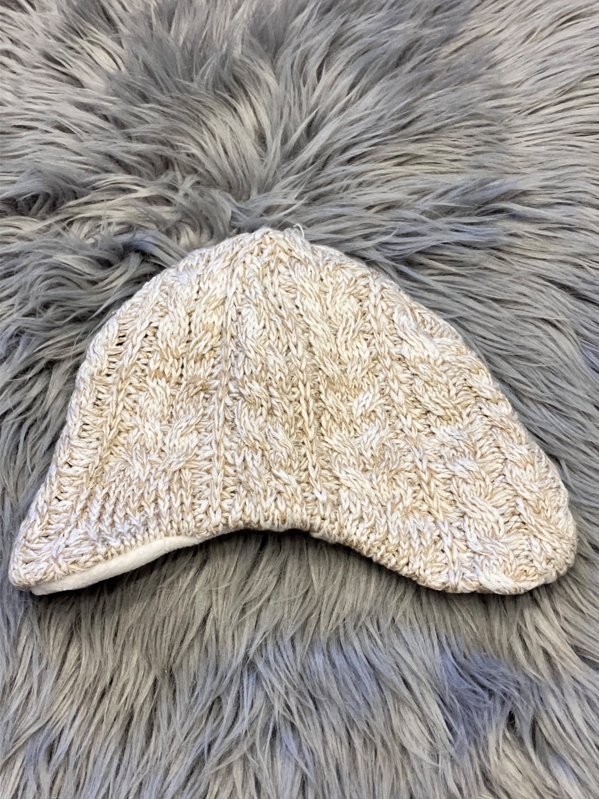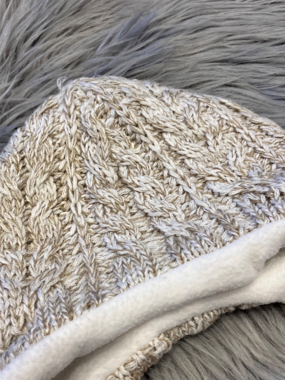 Chlapčenská zimná čiapka, elastická, farba: béžovo-bielo-strieborná (lesklá), materiál 100%acryl, podšívka 100%polyester.