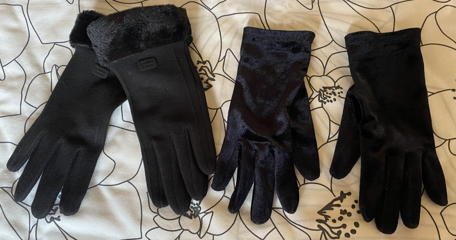 Elegantné čierne zamatové rukavice - UNI veľkosť