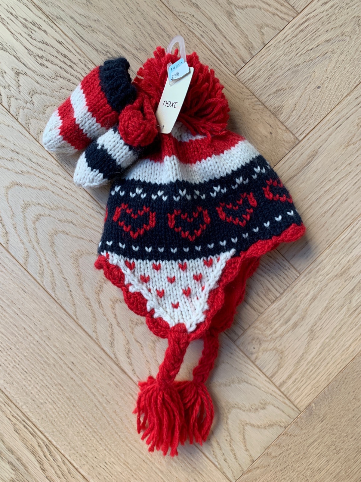 Next zimná čiapka+rukavice pre malu slečnu.Velkost:3-6mes.Orig. cena bola 12 eur.