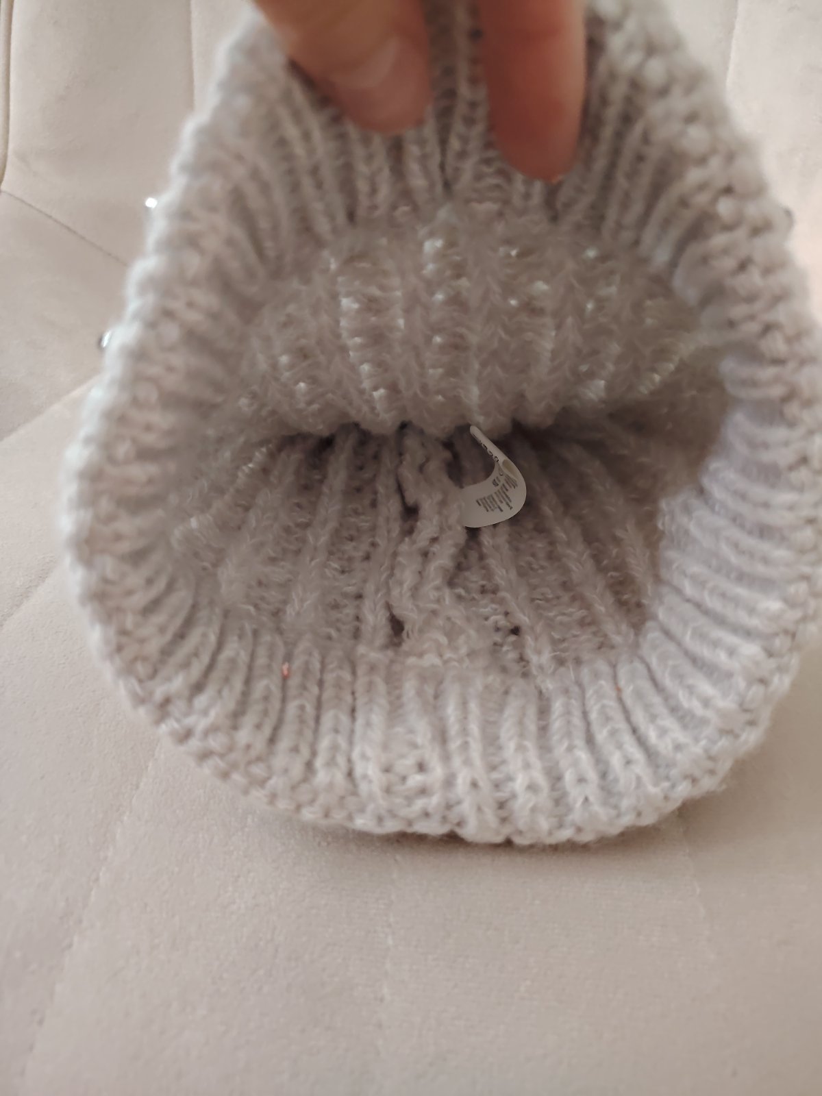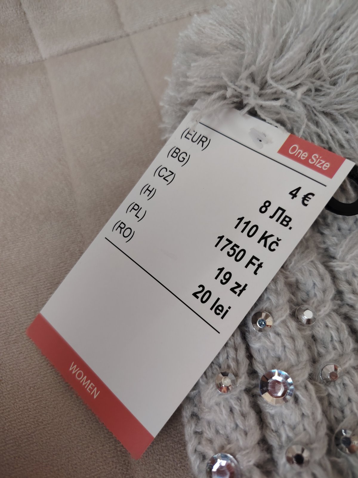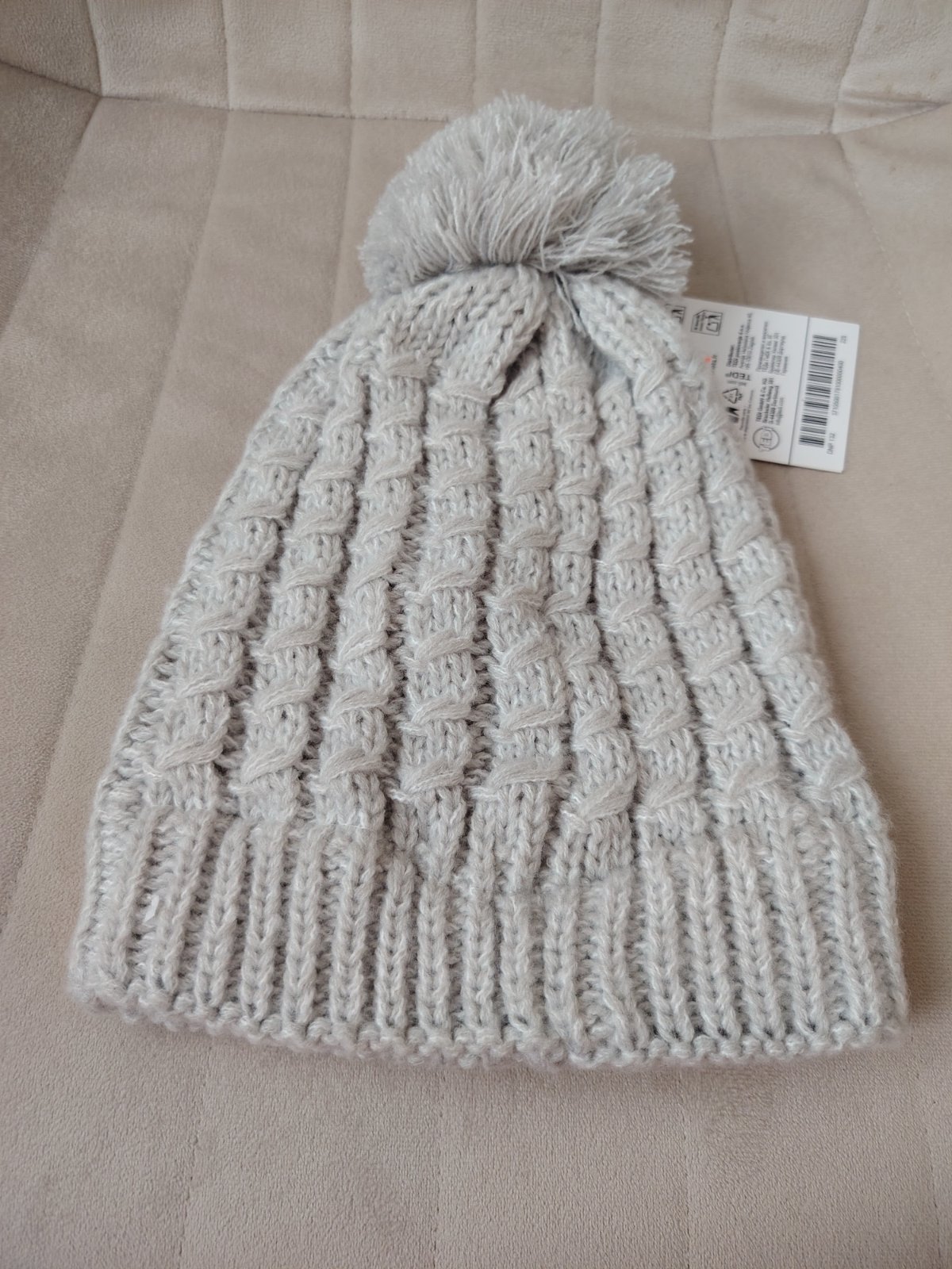 - nová sivá čiapka s brmbolcom a s ozdobným kamiekami, kupovaná v Kiku