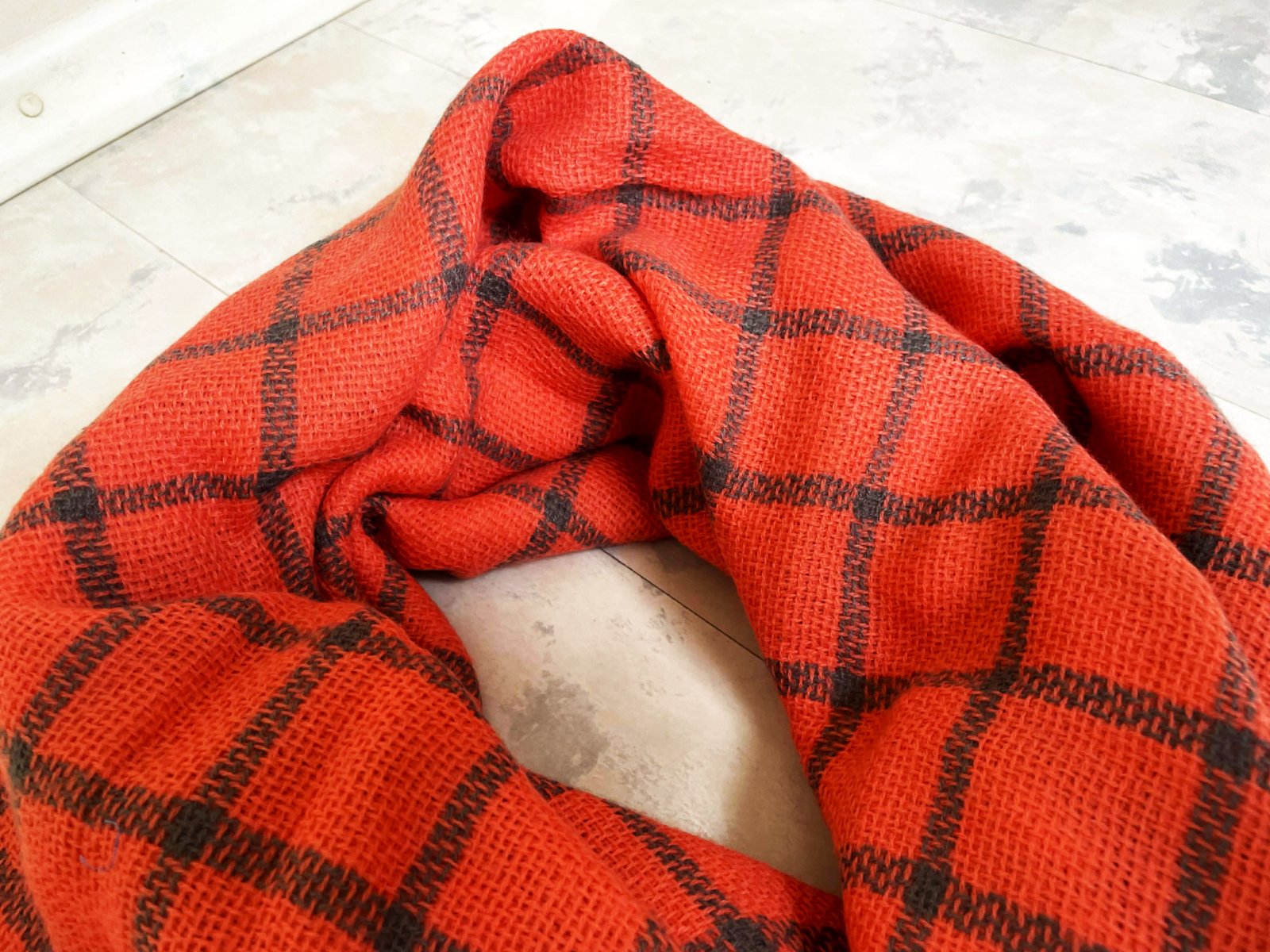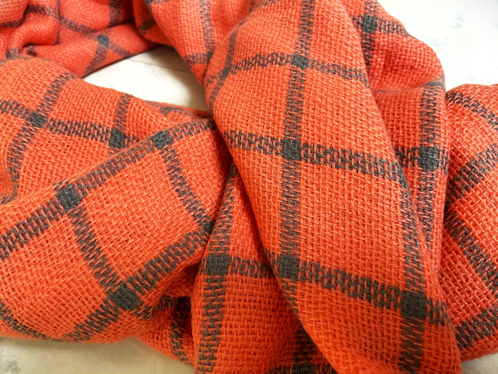 kvalitná obrovská teplá šatka na krk - šál,krásna kombinácia farieb : lososovo - oranžovo - červená so šedou,nová - iba prepraná po skladovaní,top stav,krásny doplnok, dá sa rôzne uviazať a aranžovať,nehryzie,