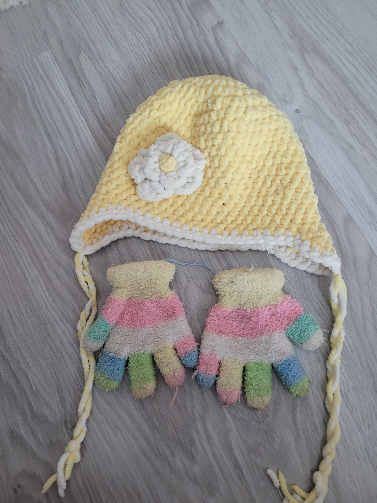 velmi pekna farebna, zdobena kvetinami v sedej farbe a kozusinovou bambulkou...