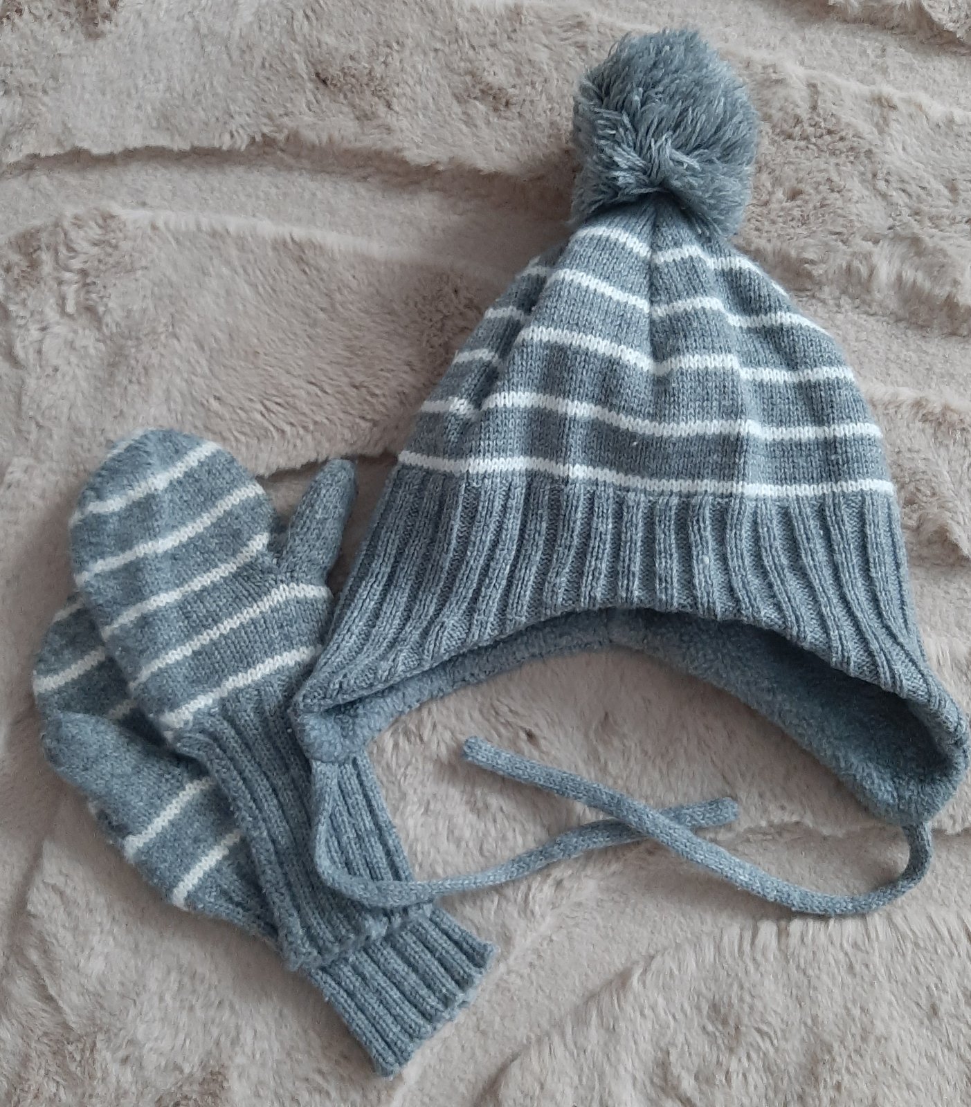 Predám set čiapky a rukavíc, pekný nosený stav, bez poškodení. Čiapka je podšitá flísom. Dvojčíslie 86/92.