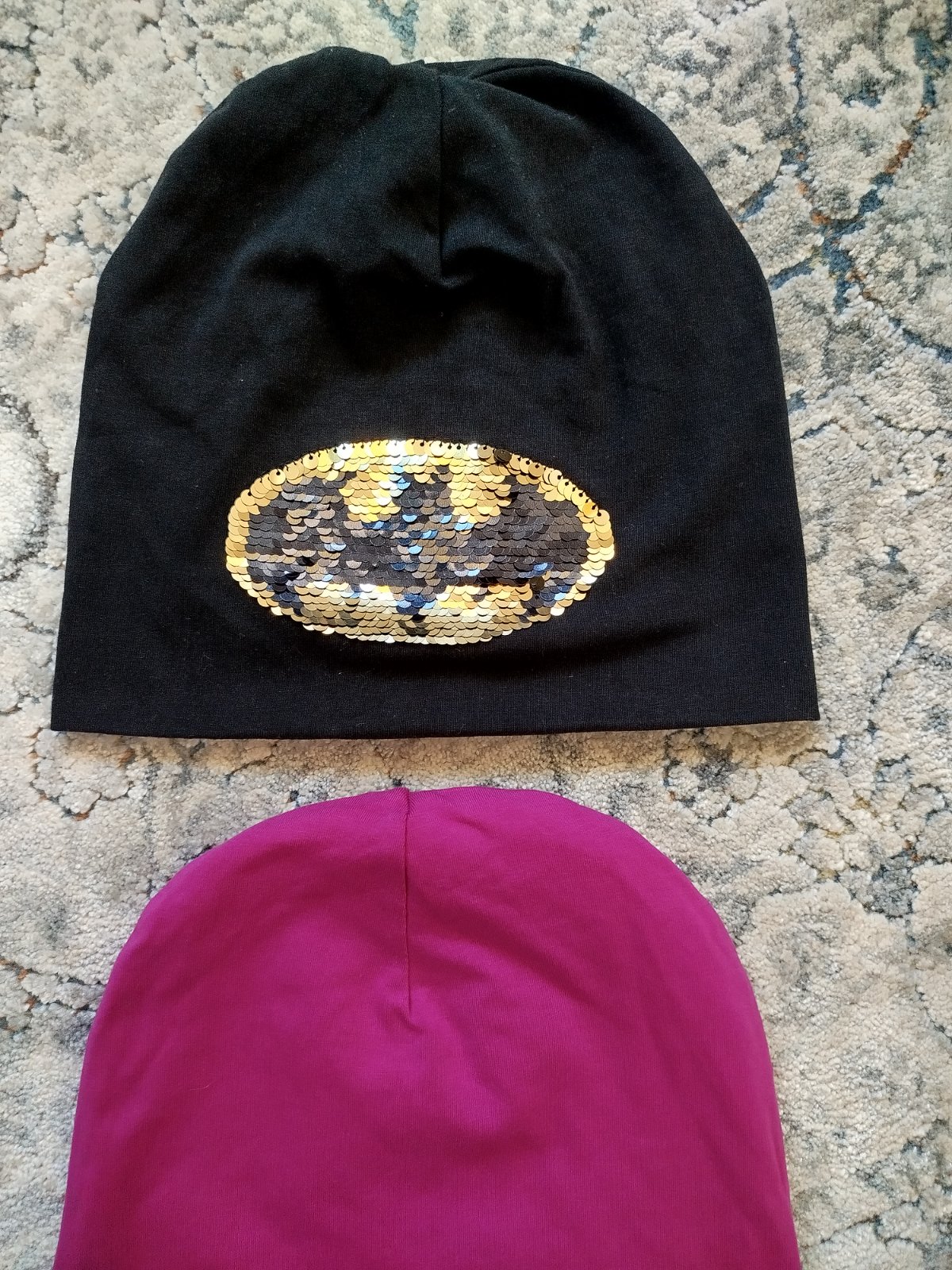 Krásne prechodné čiapky, pekný málo nosený stav. Obvod v kľude 48cm, dĺžka čiapky je 20cm ružovej a 21cm čiernej. Znak na čiernej čiapke je meniaci. Kus 4€ + pošta. Balné si neúčtujem 🙂