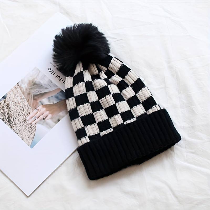 Pletená zimná čiapka s otvorom na cop. Dvojvrstvová.
