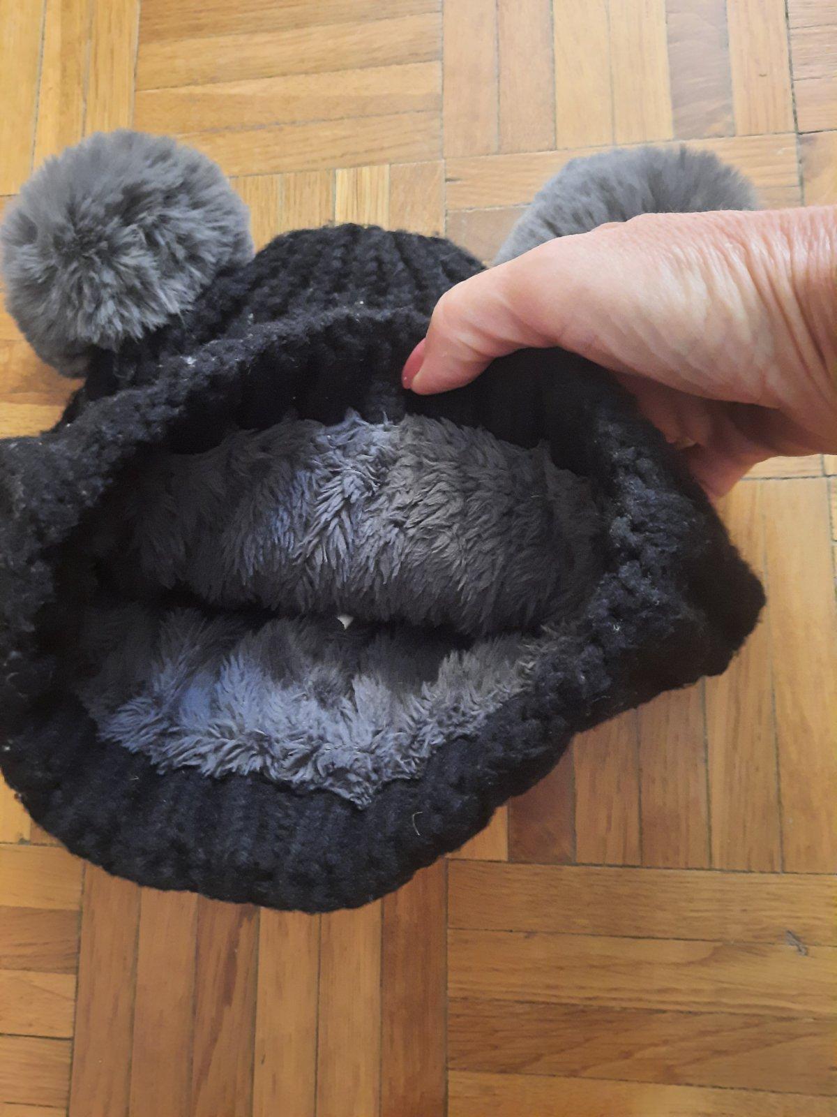 Super pletená zateplená čiapka s 2 brmbolcami. Vo vnútri je kožušinka. Veľmi dobrý stav.