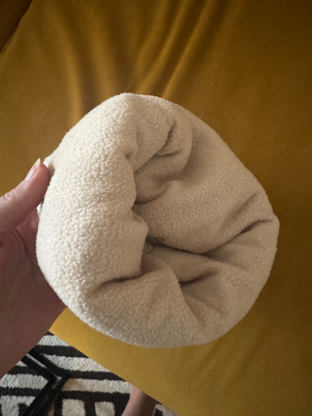 Dámska zimná čiapka s brmbolcom, vnutri zateplená a príjemne teplá. Širka spodnej časti (najširšej) je 22 cm.
