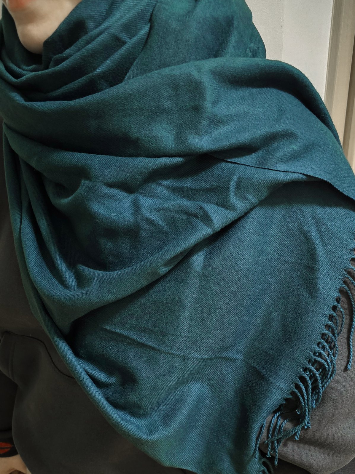 Kvalitný a príjemný hrejivý materiál. Dĺžka 194 cm + strapce, šírka 71 cm