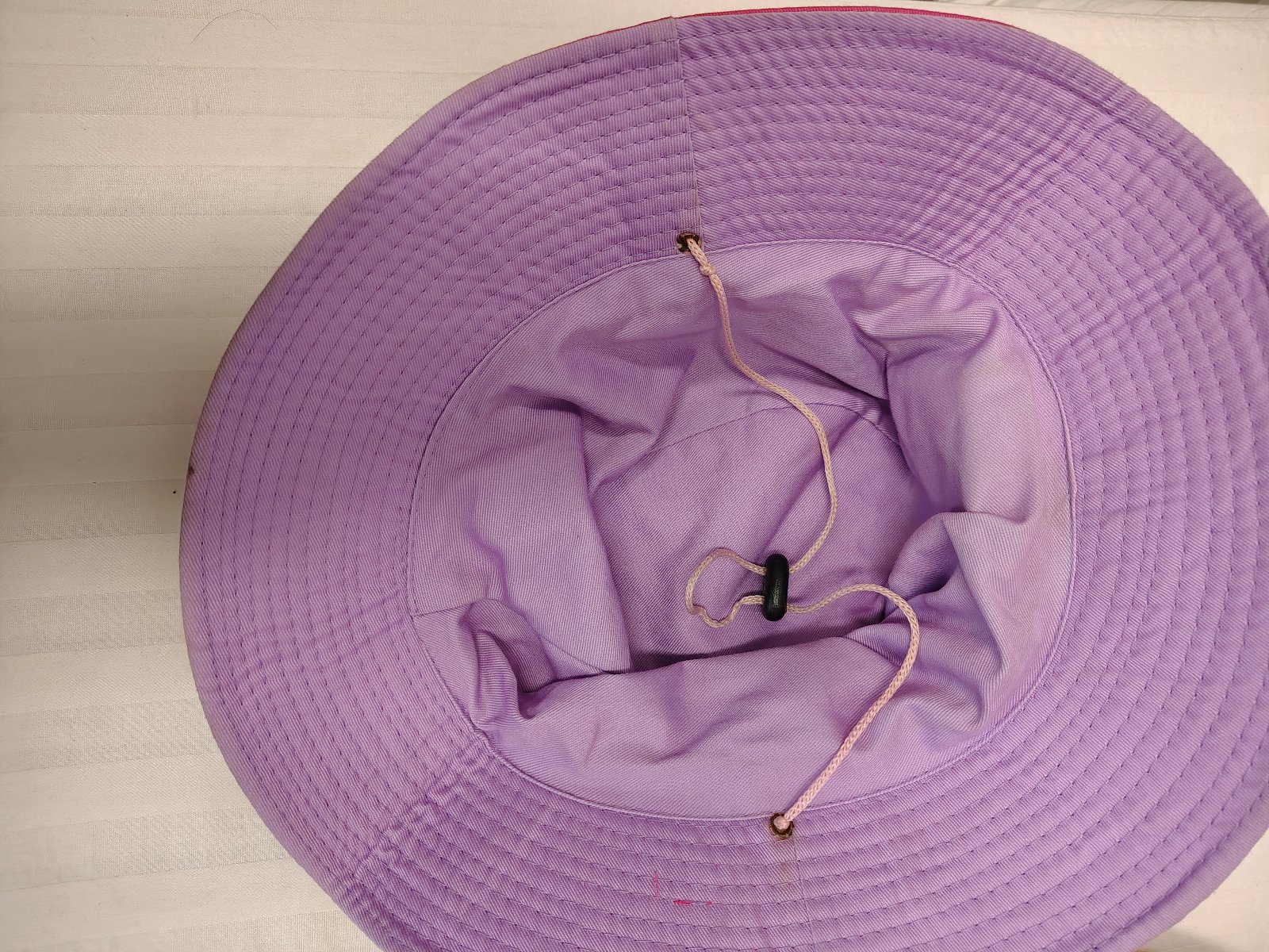 Dámsky Sýto ružový klobúk so šnúrkou, Machupicchu, č. 504, s motívom, pod bradou je sťahovacia šnúrka, zo spodu je podšitý fialovou látkou,