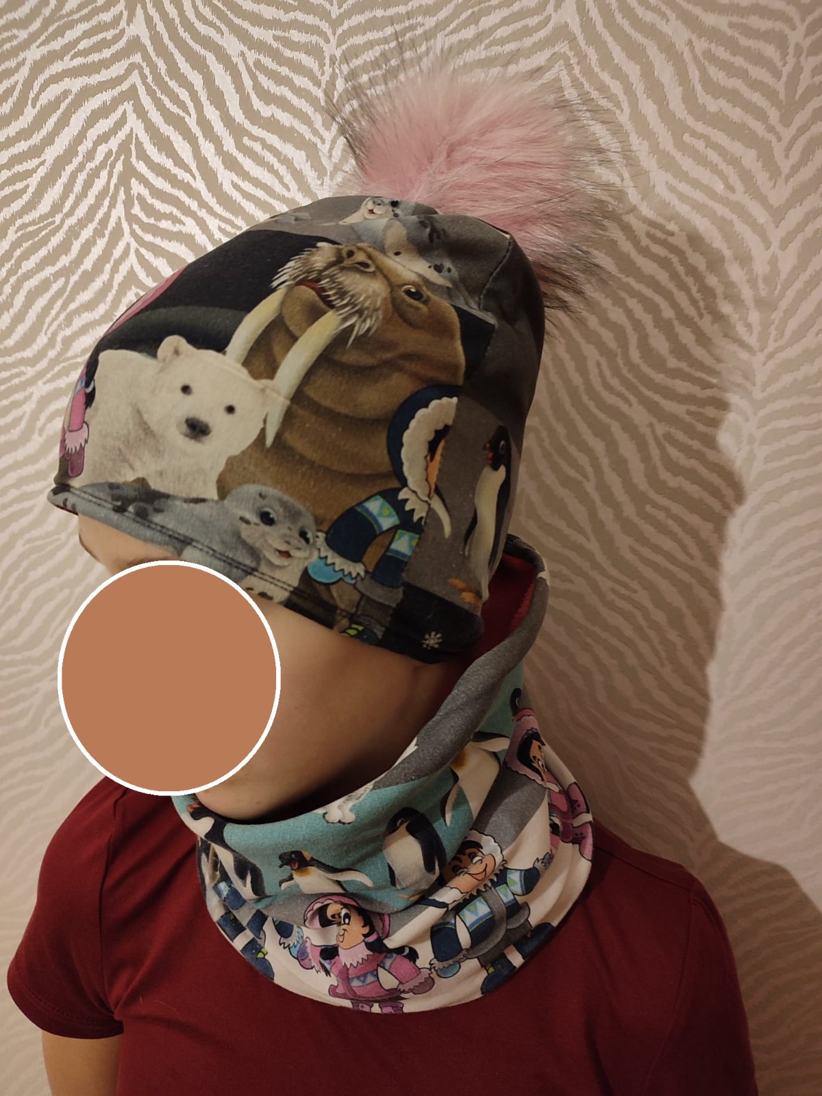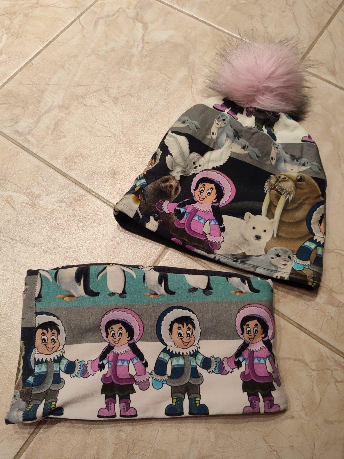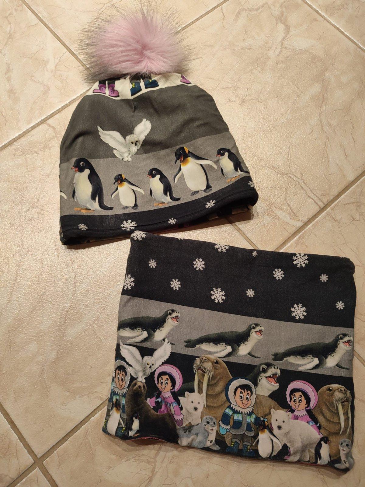 Milá súprava čiapka + šál, obidve podšité fleecovou podšívkou. Dcéra set nosila vo veku 8-12 rokov.