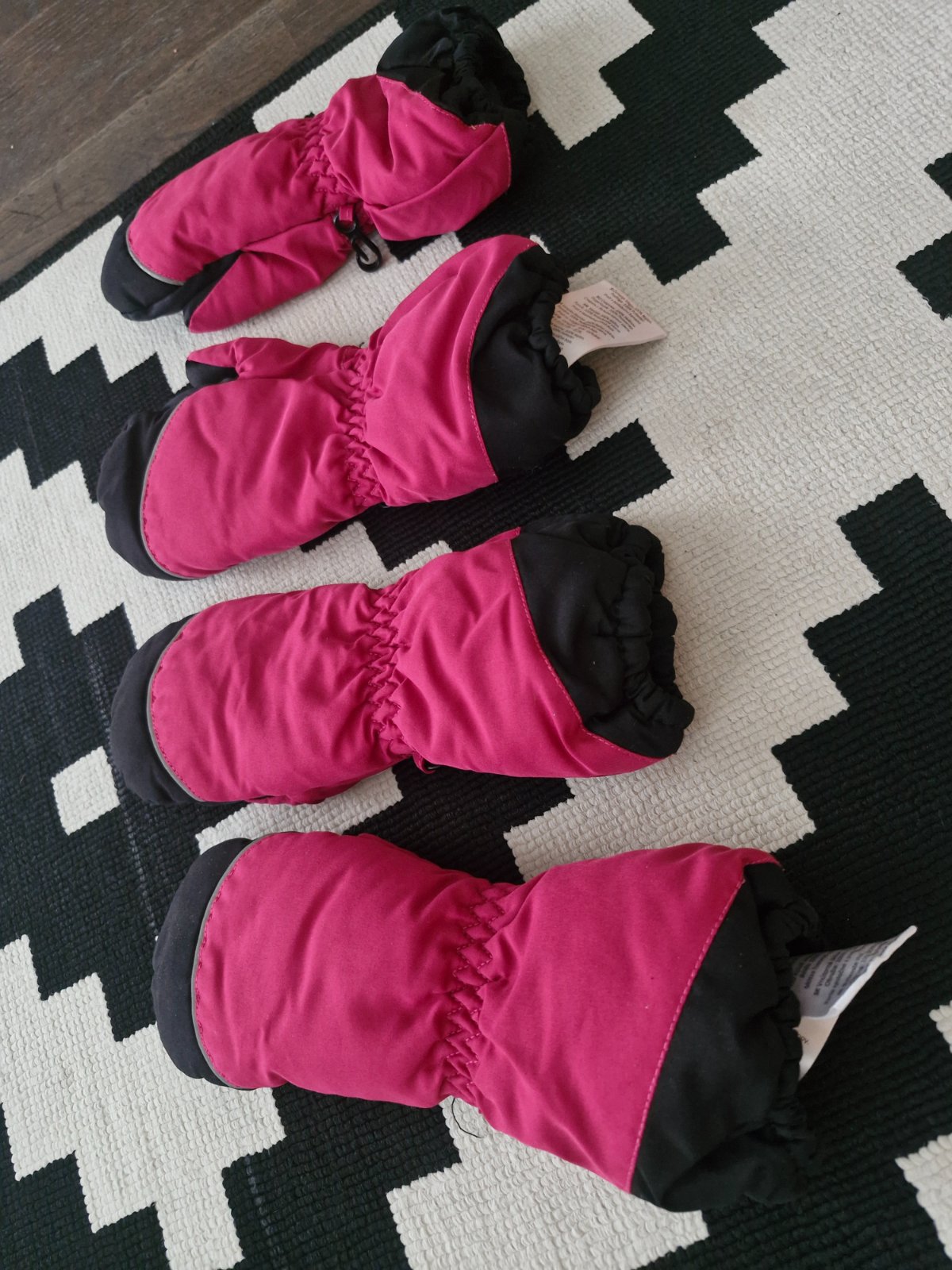 Skvele zateplene rukavice-palciaky na 6-8r a 8-10r,chyba z vnutornej strany pogumovana vrstva,inak vyborny stav,potrebne nastriekat impregnacnym sprejom,aby boli nepremokave,cena LEN 4eur za par,pri odbere spolu zlava 2eur vo vyske obyc posty.