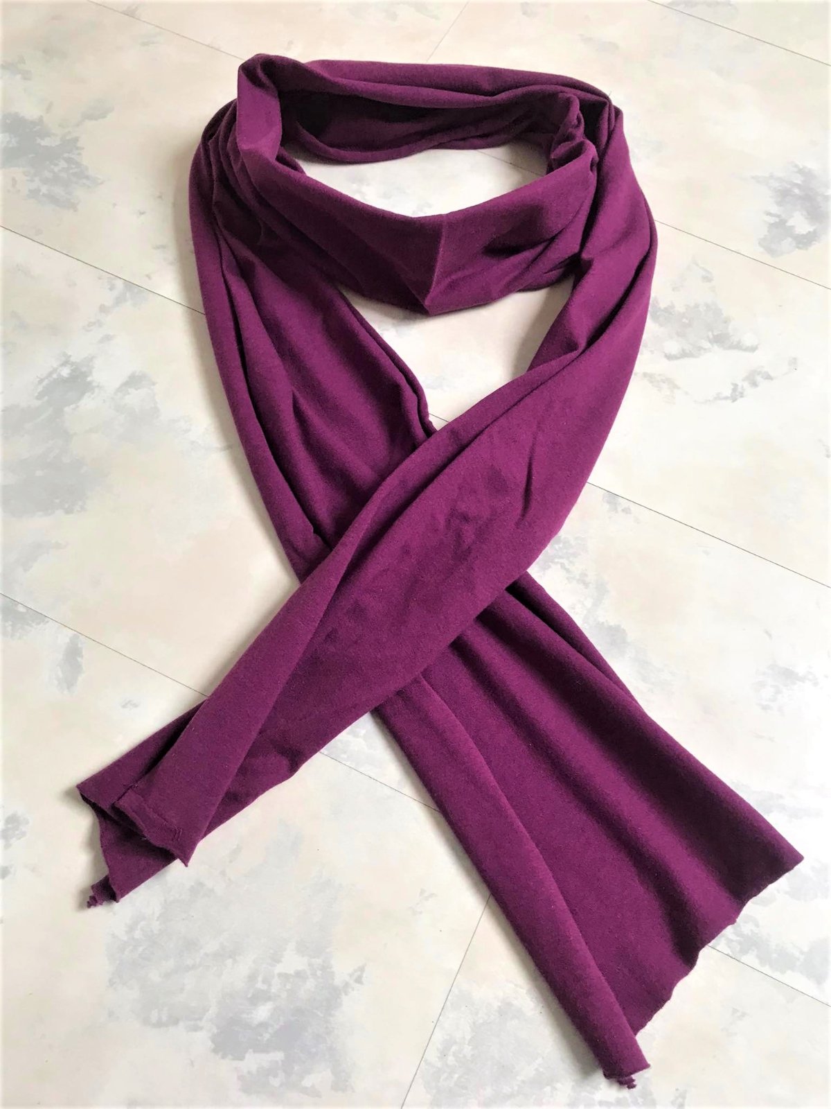 tenký bavlnený šál/šatka na krk,veľmi variabilný,kvalitný,krásna zvláštna farba - fialovo - bordó - cyklámenová ( podobná ako je farba sliviek ),materiál - tenký úplet - tričkovina,30 x 200 cm, dá sa aj rozstrihnúť na 2 ks,čím bude kratší ( 30 x 100 cm )