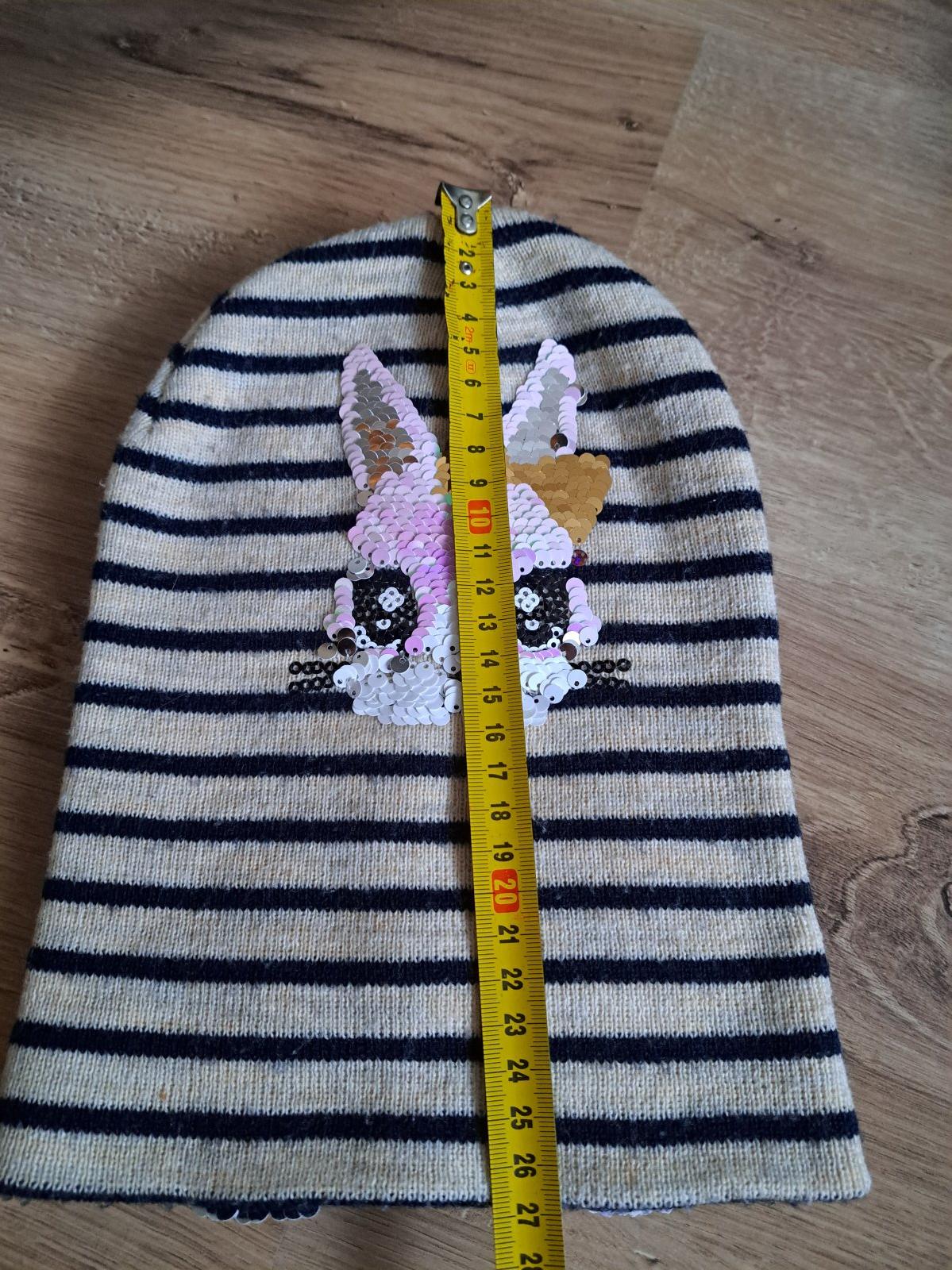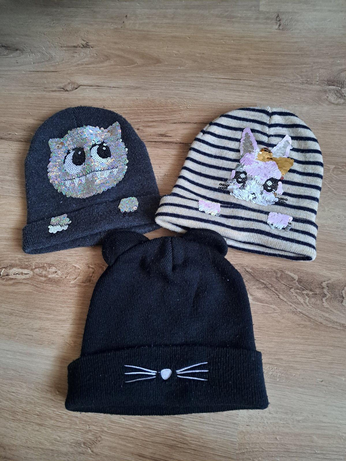 Ponúkame čiapky s flitrami vo veľmi dobrom stave. Veľkosť písaná 110/128 ponosíte dlhšie. Miery vid foto. Čierna čiapka pepco grátis.