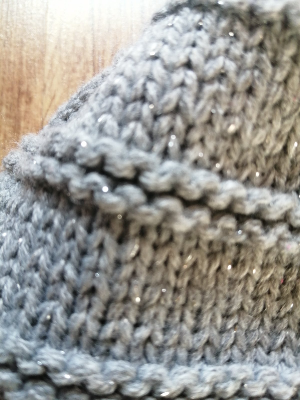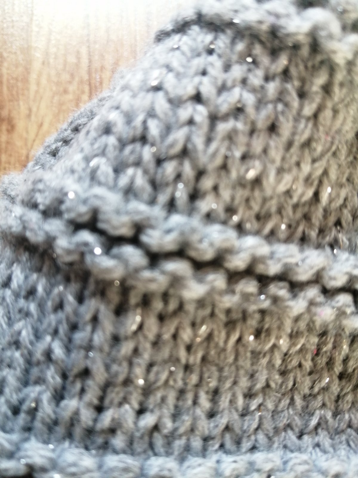 Siva ciapka s ligotavou nitou.