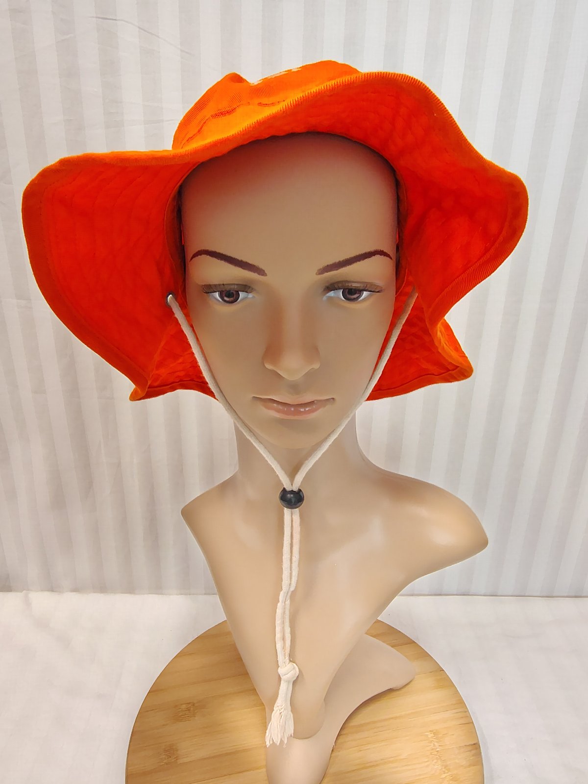 Dámsky sýto oranžový klobúk so šnúrkou, Tnc, č. 601, pod bradou je sťahovacia šnúrka,
