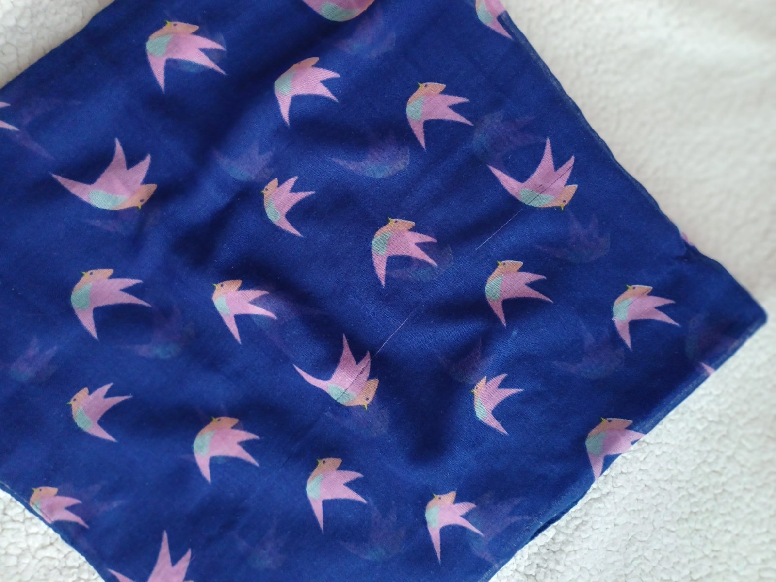 Modrá šatka na krk s vtáčikmi