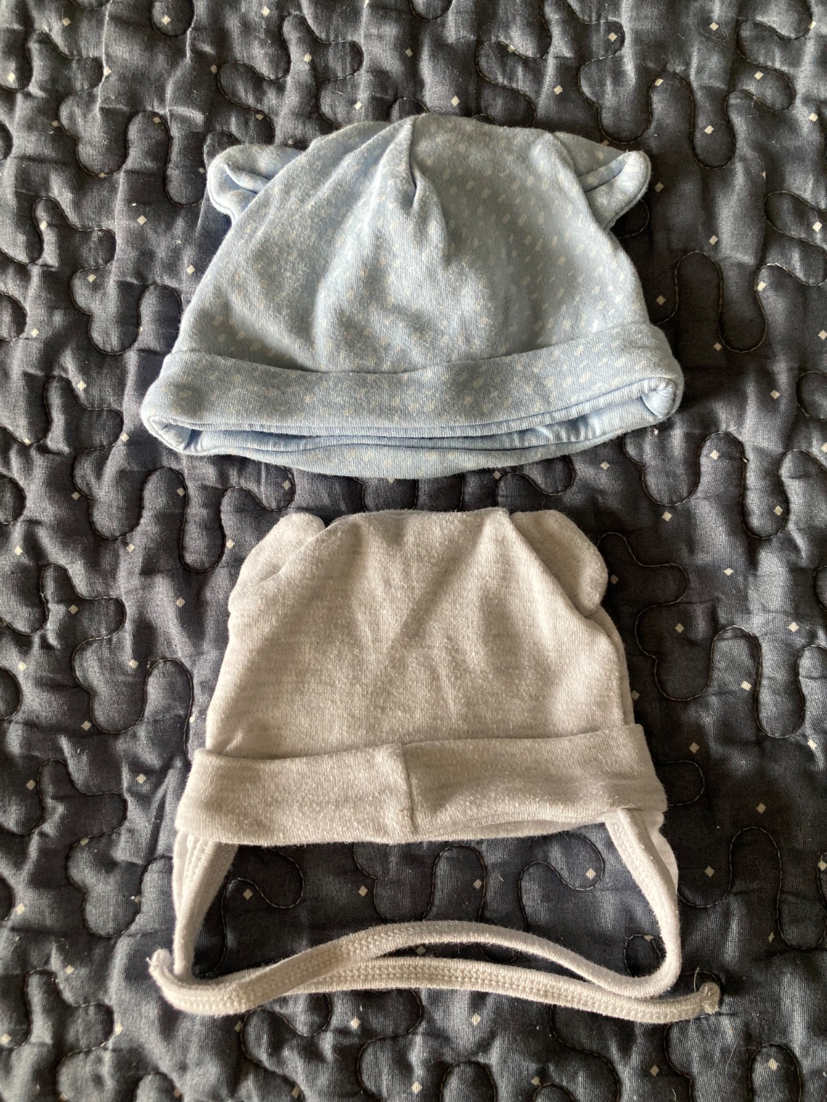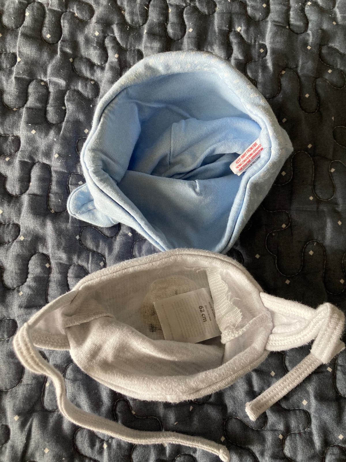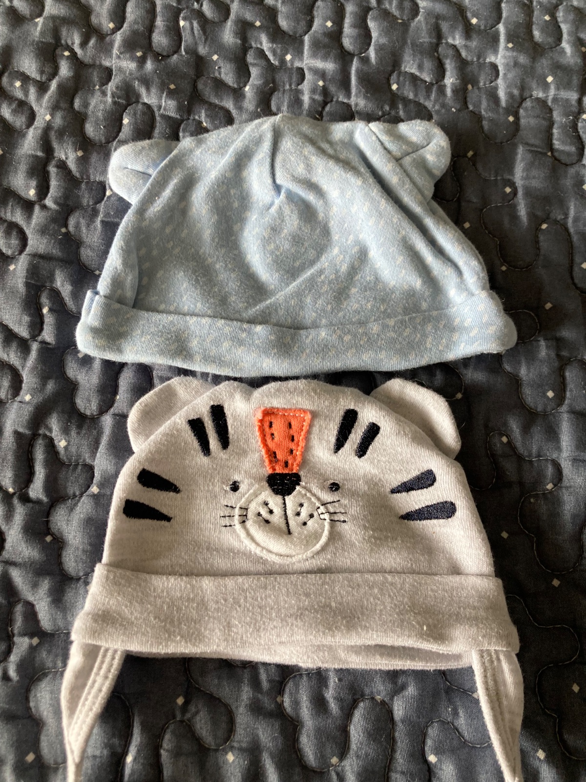 dve bavlnené tenké čiapky, s uškami F and F, s tigríkom So cute