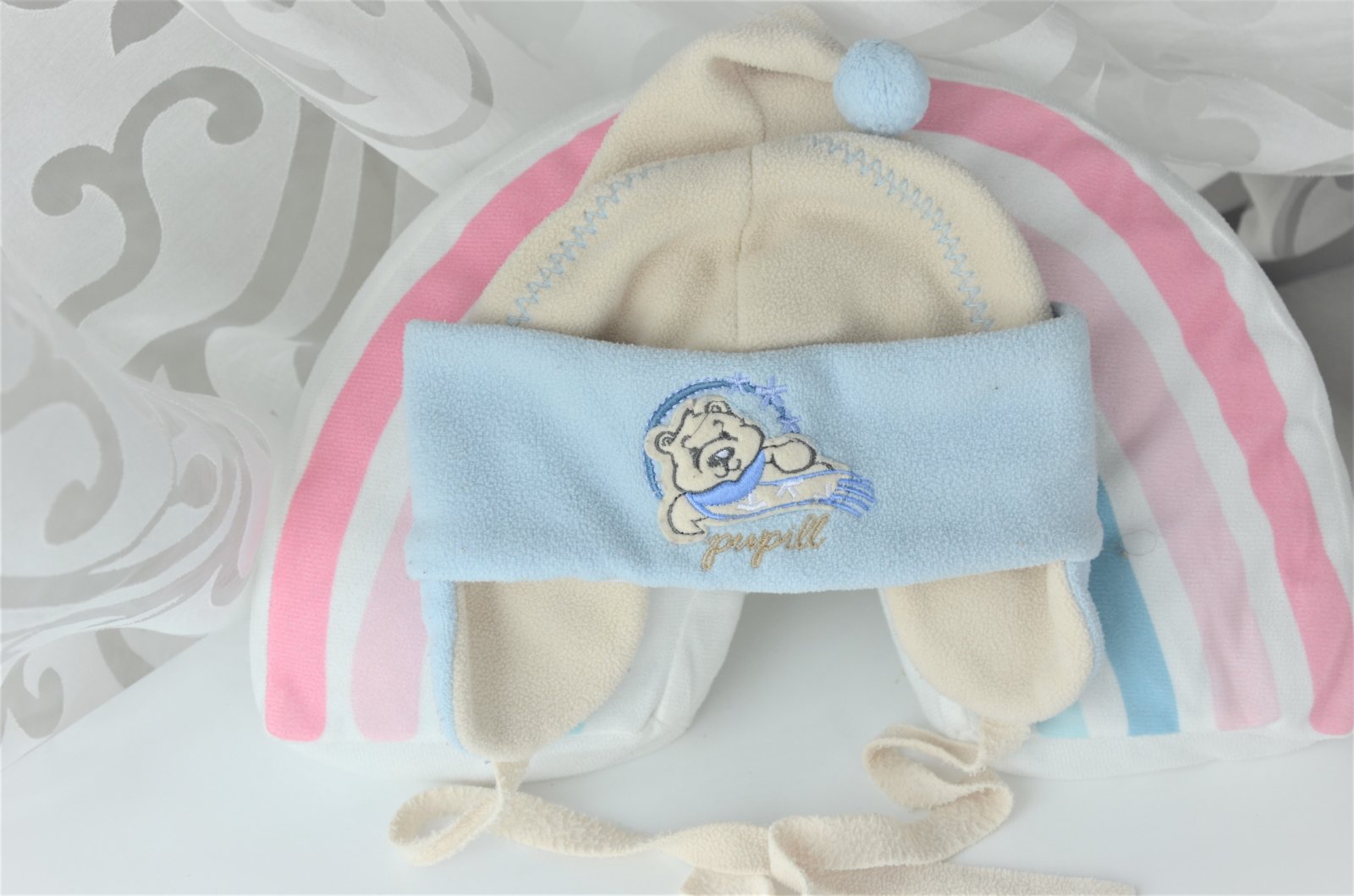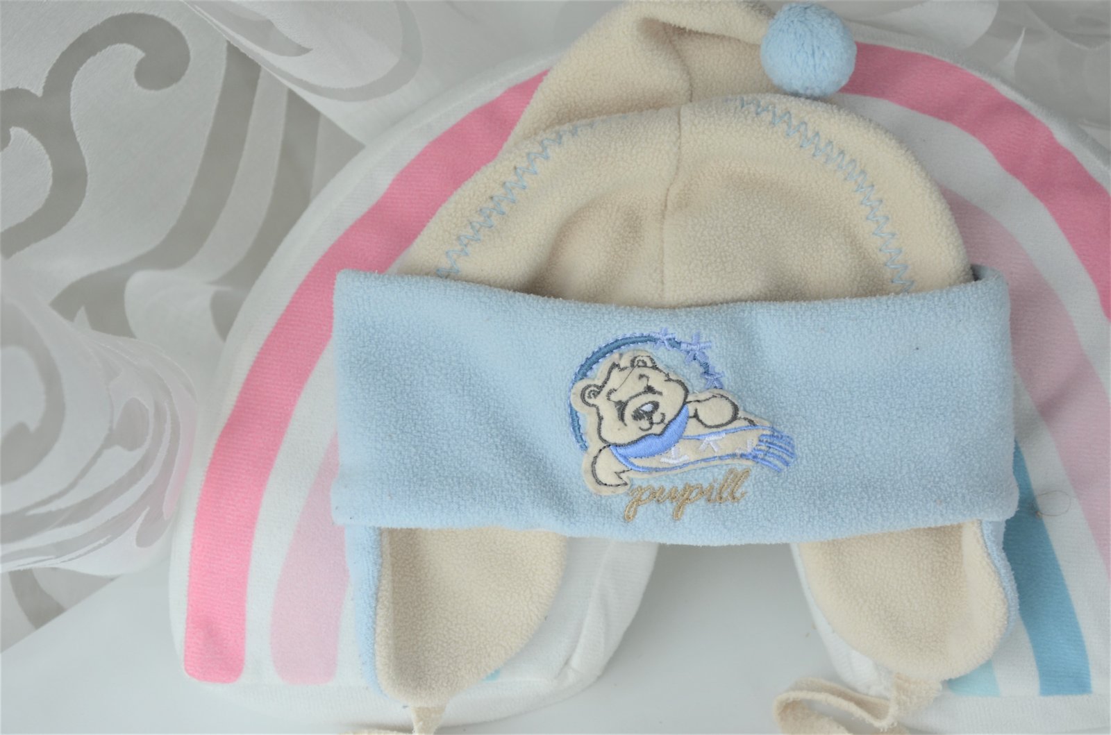 nevymieňam!!čiapočka je celá flísová,teplučká,pár krát oblečená,vhodná na zimu,vhodná na 9-12 mesiacov,obvod hlavy cca 45cm..trolinku elastická,ale len málo,má "klapky"na uši..kuk aj na iné moje inzerát