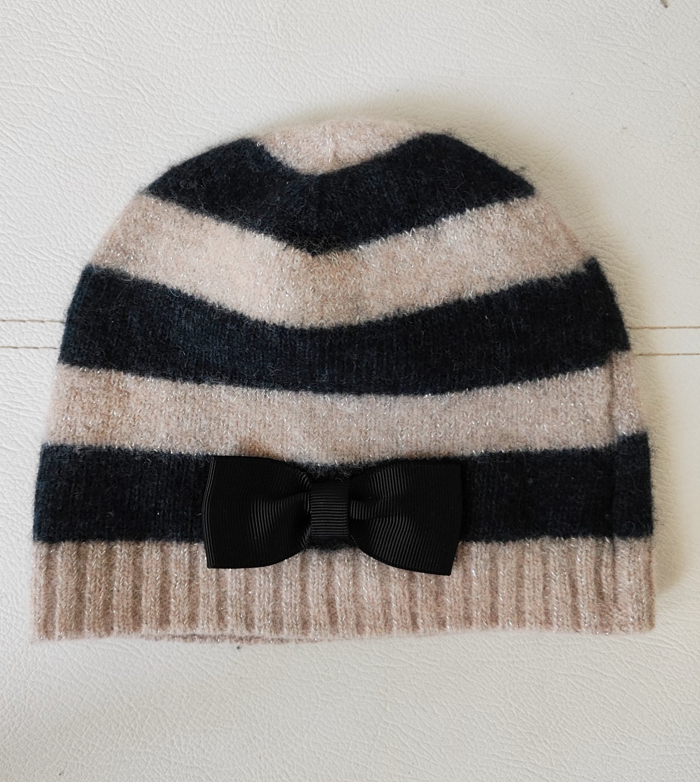 Teplá štrikovaná čiapočka. Má bežné známky používania, chĺpok žmolček vzhľadom k materiálu.