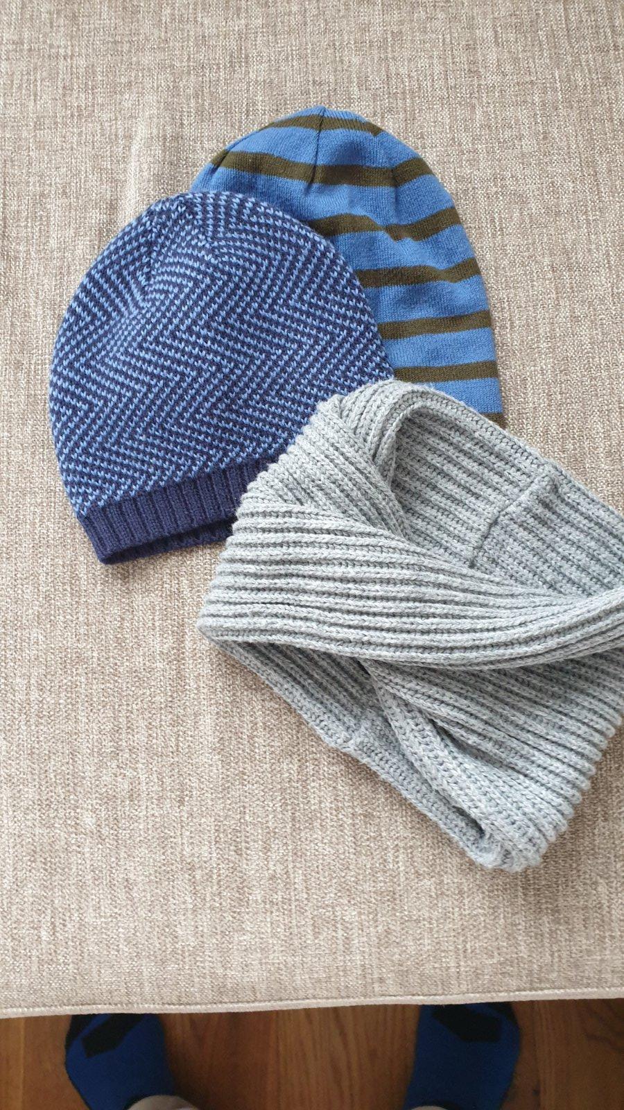 Predam 2 ciapky a nakrcnik. Nakrcnik je znacka Zara, noseny 1 sezonu, je bez poskodeni. Tmavomodra ciapka s otaznikom, znacka Tchibo. Je to obojstranna ciapka, z druhej strany je svetlejsia modra so sivymi pasikmi, nosena 1 sezonu. Tmavomodra je znacka Alpine Pro, je nenosena. Cena je za vsetko spolu, ale predaj mozny aj jednotlivo, + postovne
