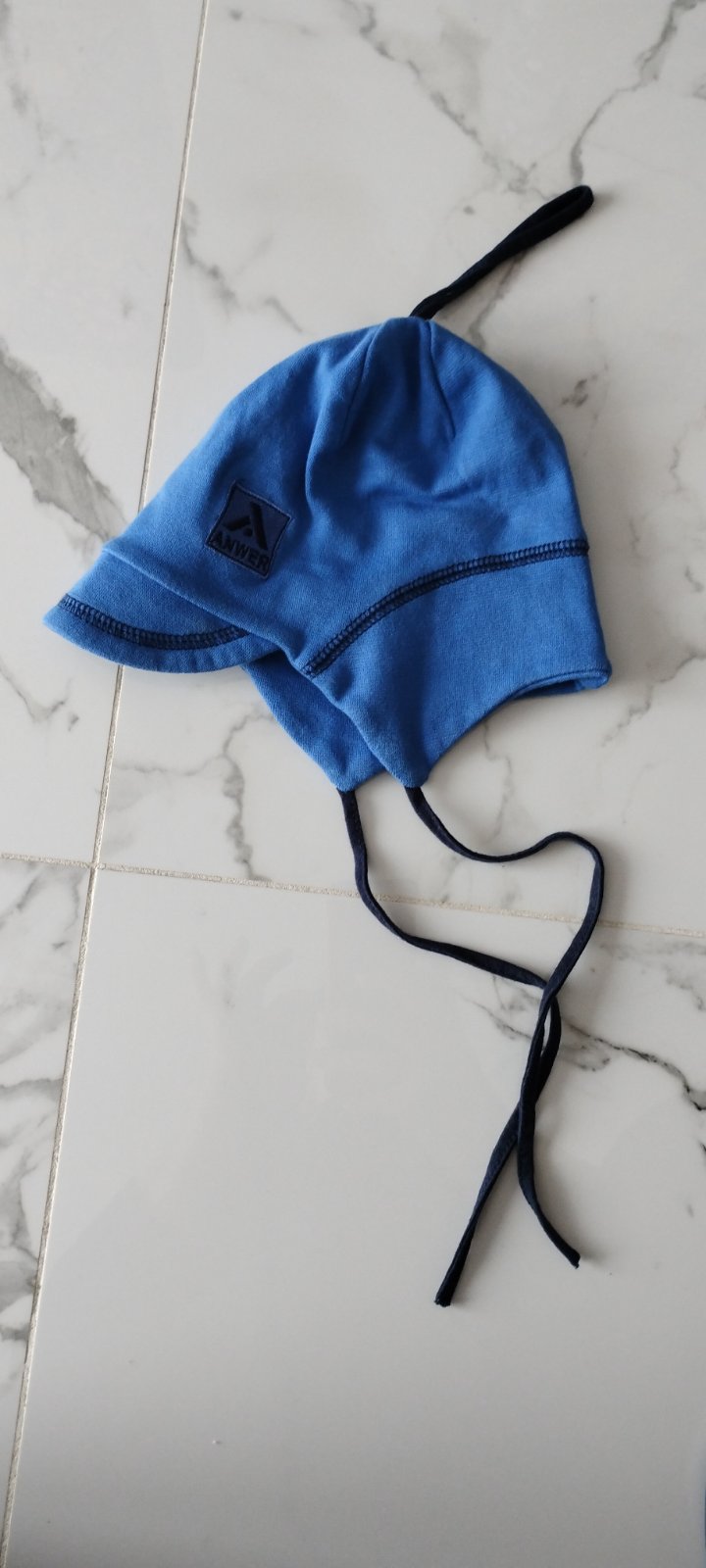 Podsita tepla ciapka, s riflovym materialom navrchu, na snurky-super sedi na uskach, odhadom do 5 rokov