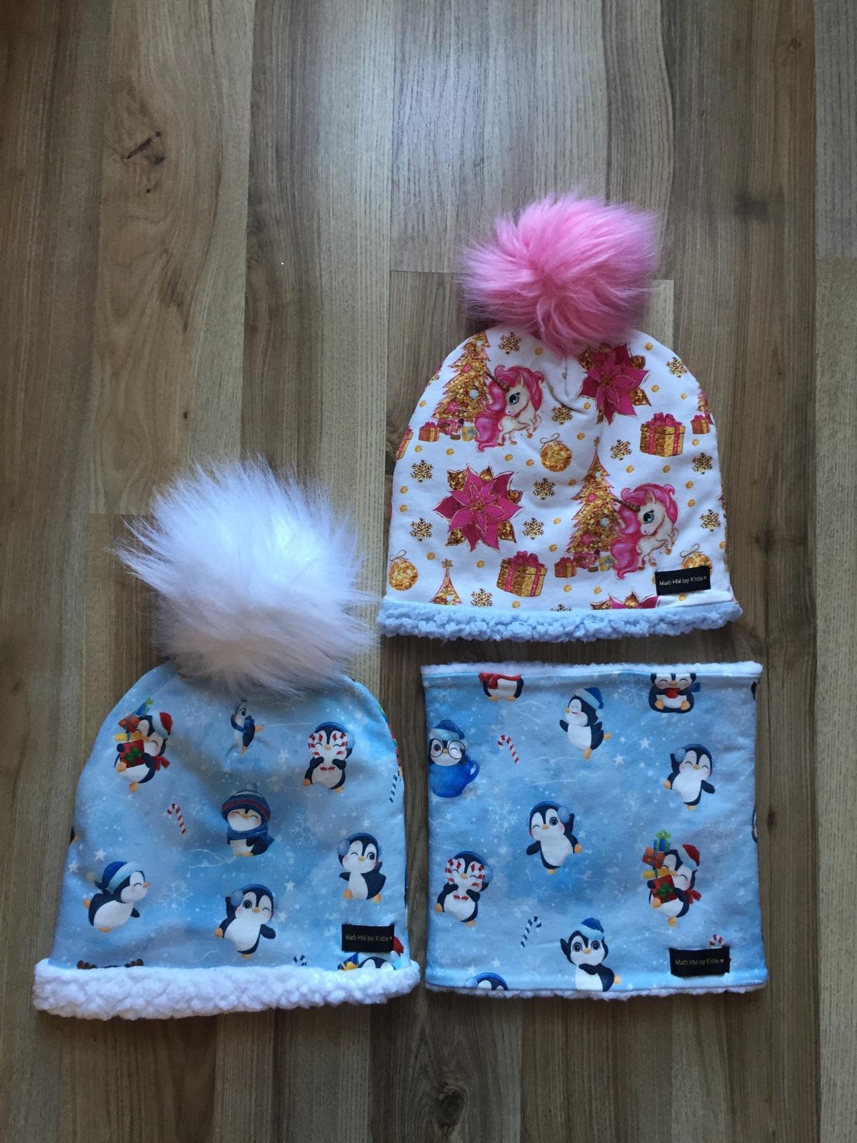 Predam ciapku a nakrcnik s tucniakmi, set je zatepleny barankom, na 3-6 rokov, vo vybornom stave. Darcek ciapka s jednorozcami.