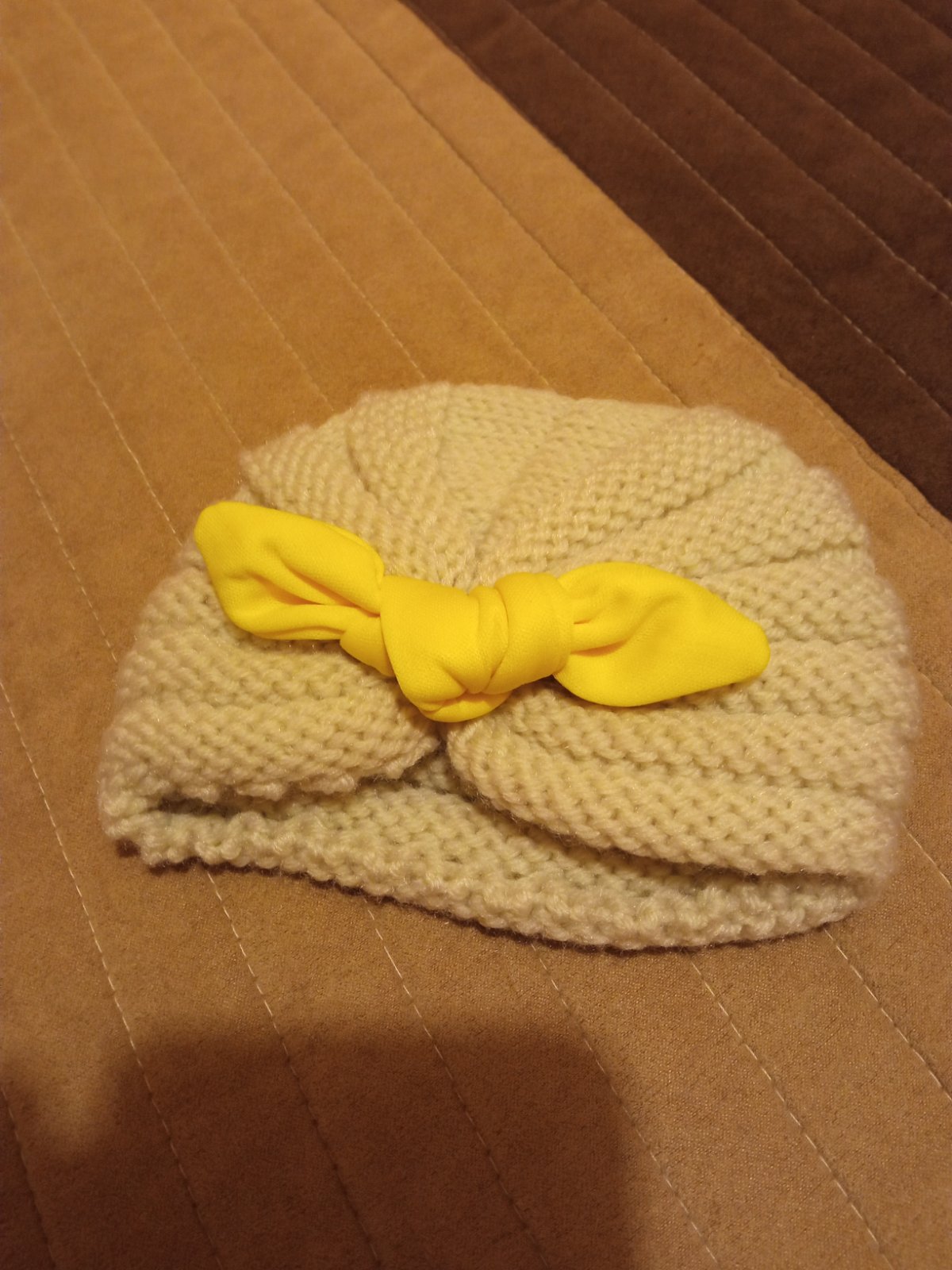 Zimná pletená čiapka s mašľou