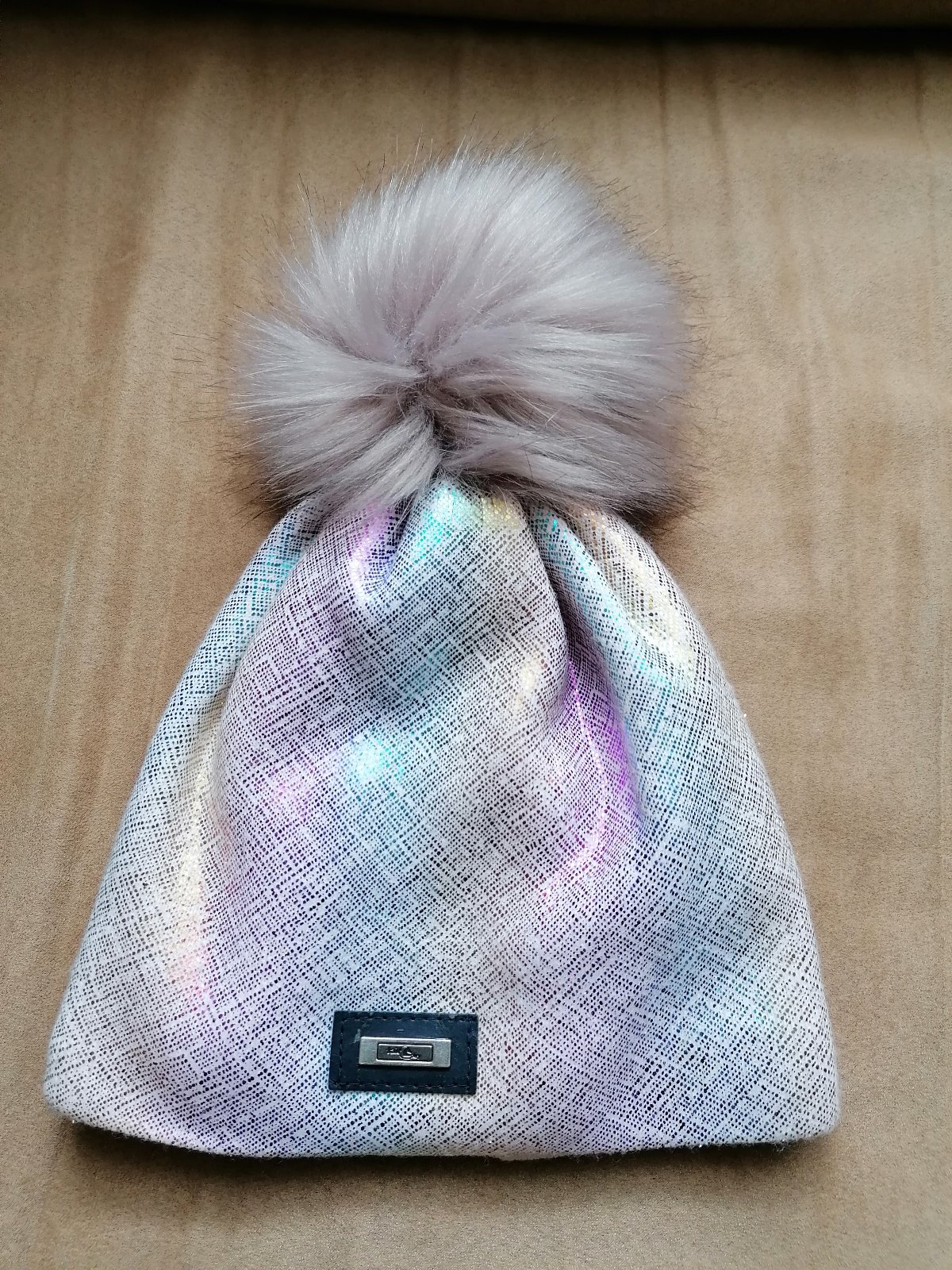 Perleťová čiapočka s bombuľou OH 46cm