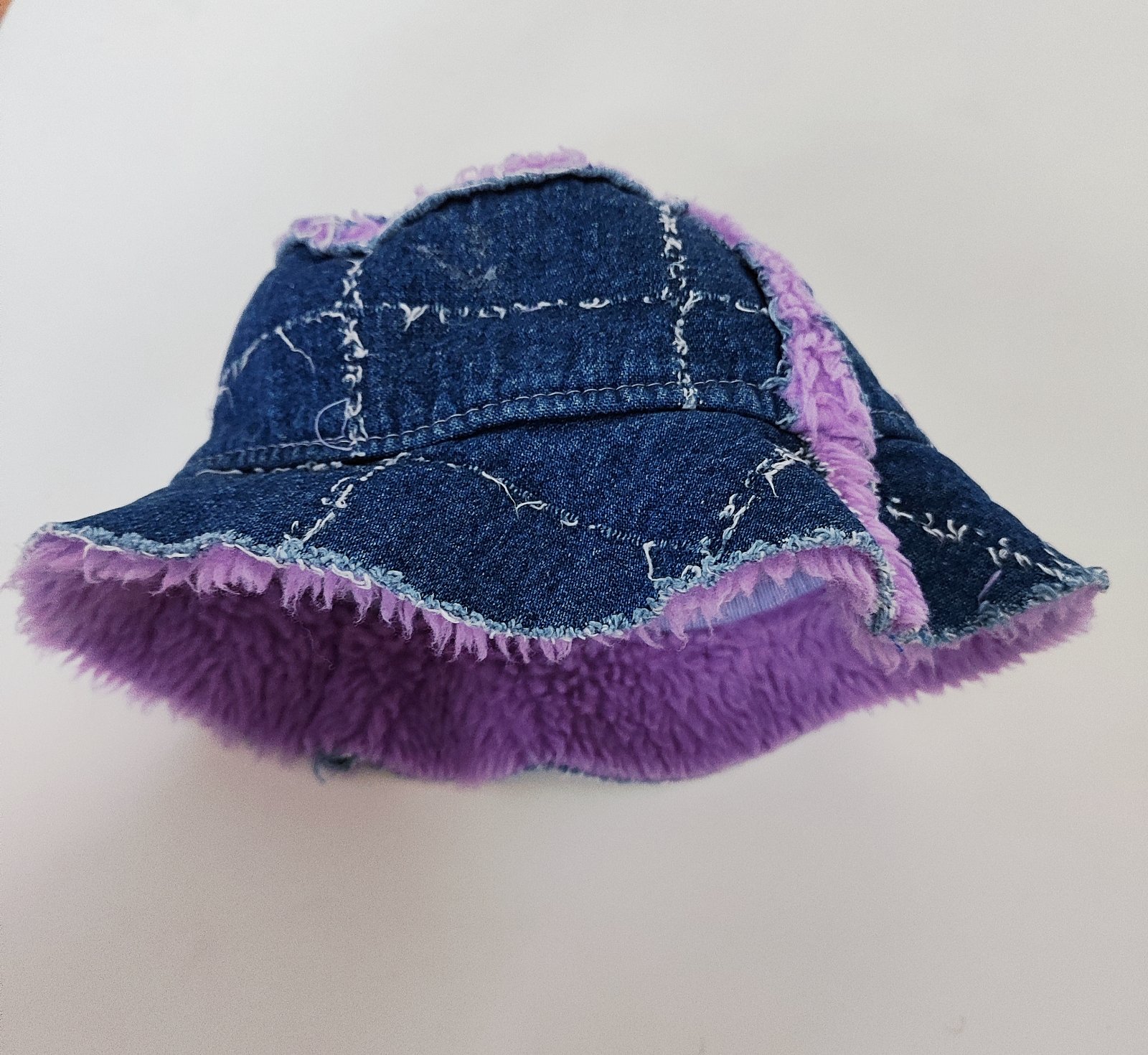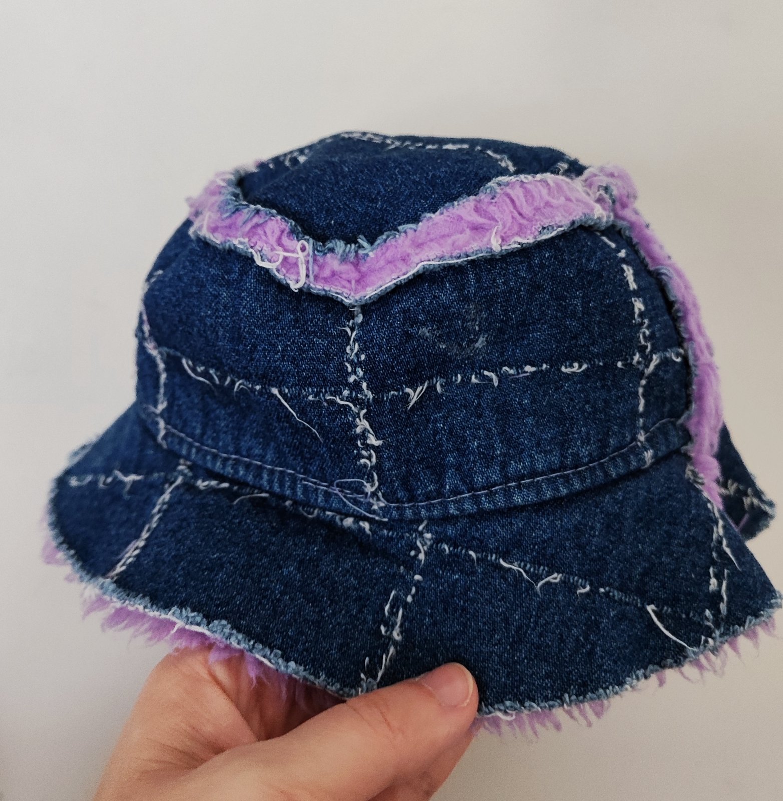Krásny riflovy, bavlnkou podsity klobucik. Obvod pise 50cm. Cena 2 eura.