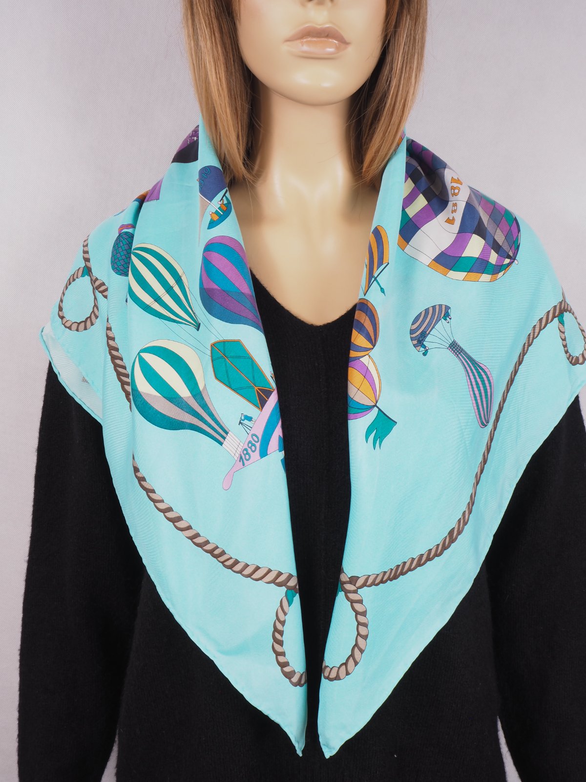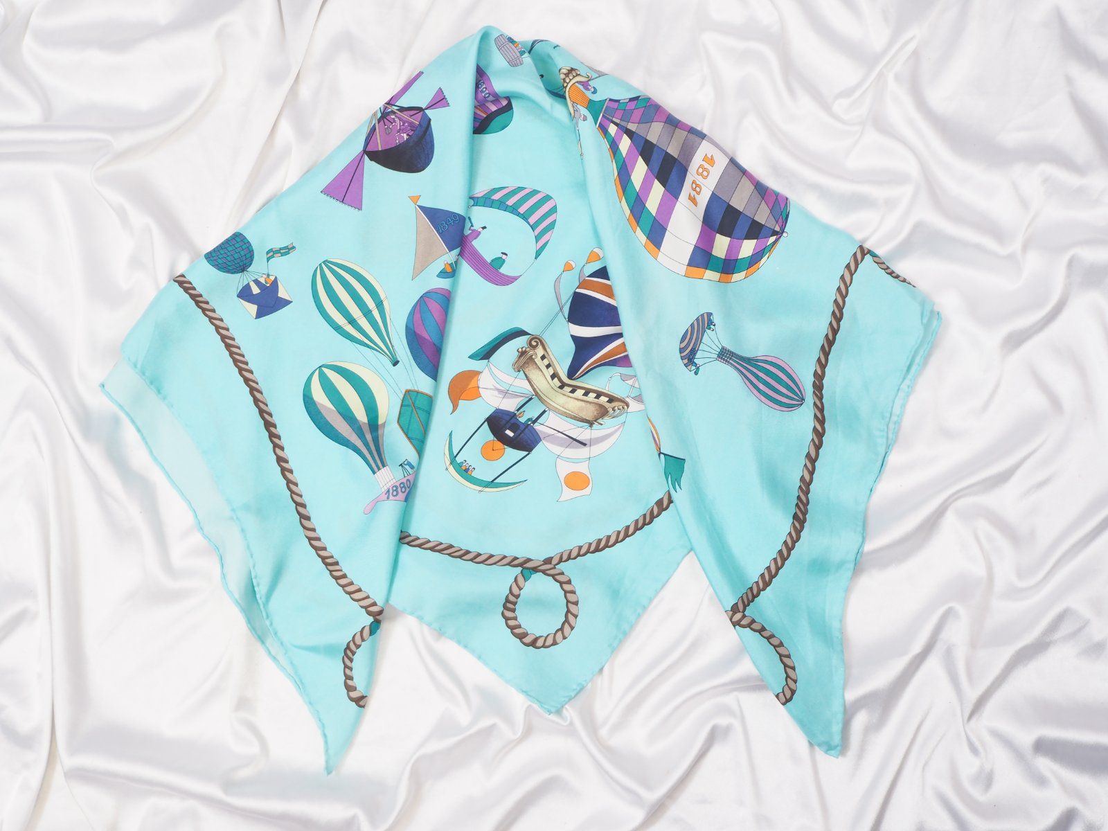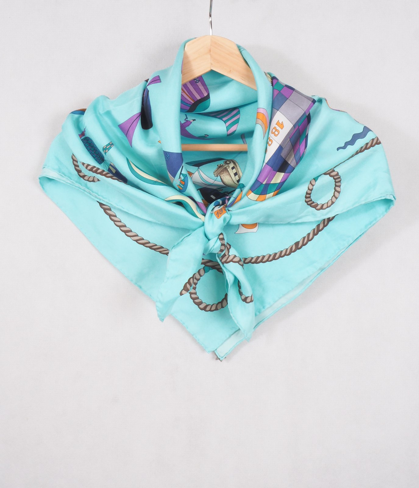 Luxusná hodvábna šatka svetlotyrkysovej farby, s nádhernym vzorom, 100% hodváb, ručne šitá, super stav.....rozmer 85x87 cm