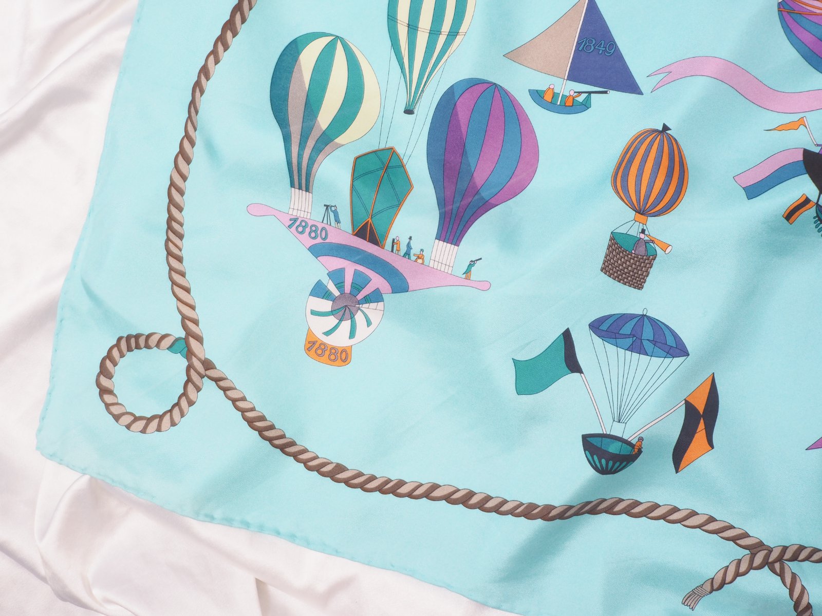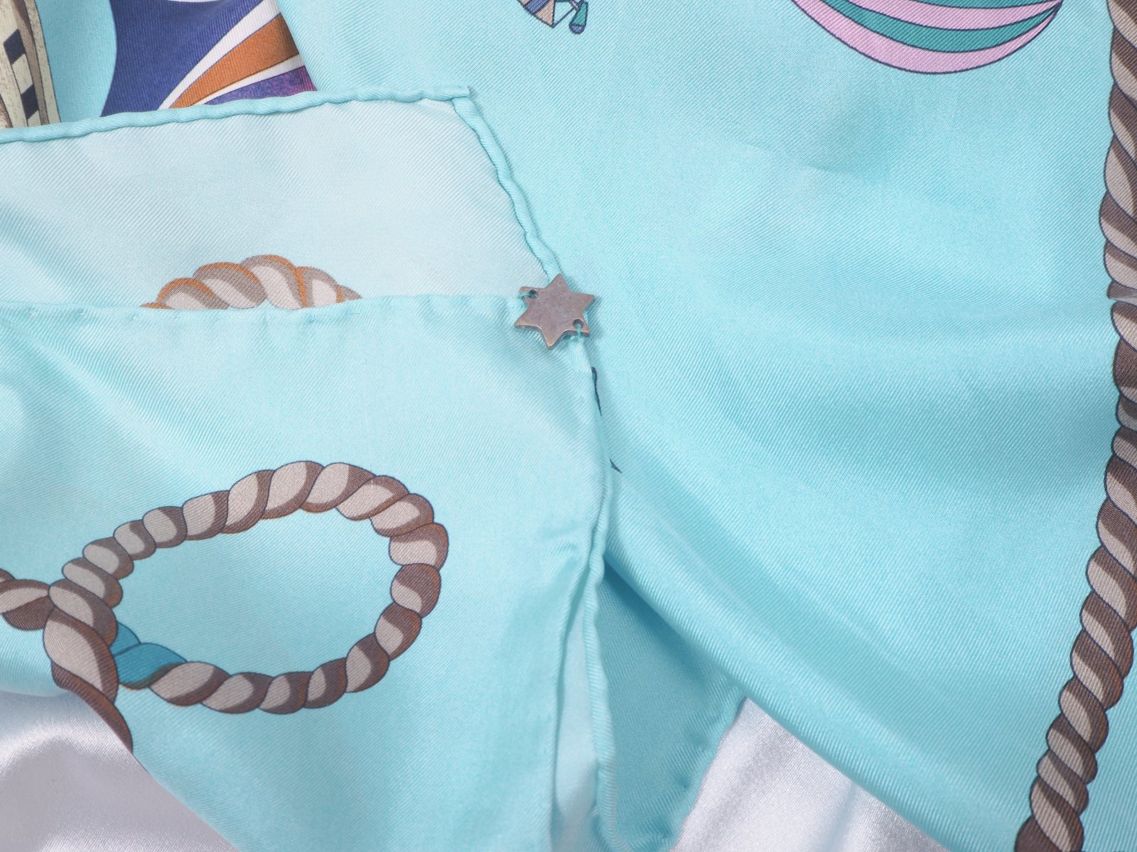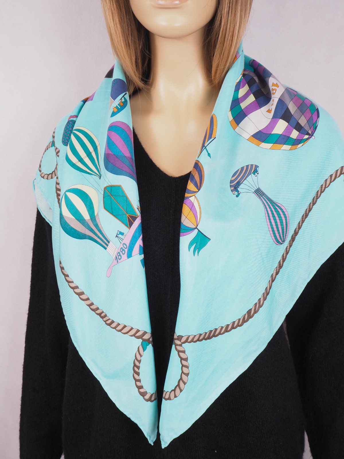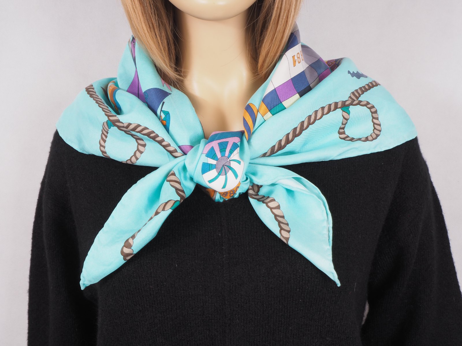 Luxusná hodvábna šatka svetlotyrkysovej farby, s nádhernym vzorom, 100% hodváb, ručne šitá, super stav.....rozmer 85x87 cm