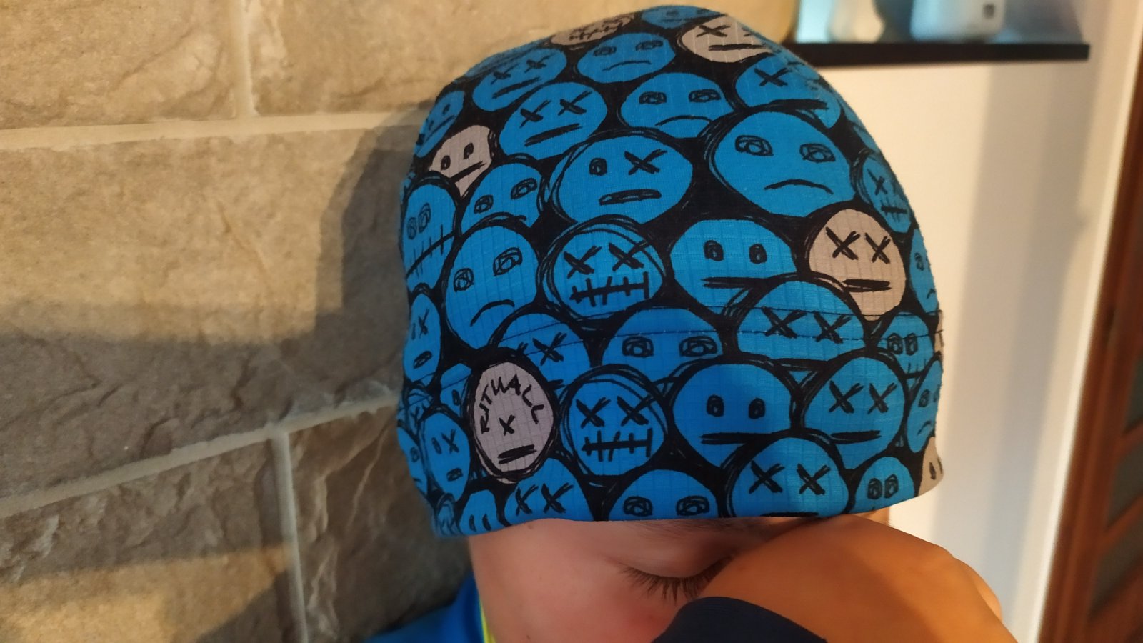 Na foto má syn 9r., obvod hlavy 54,5cm.