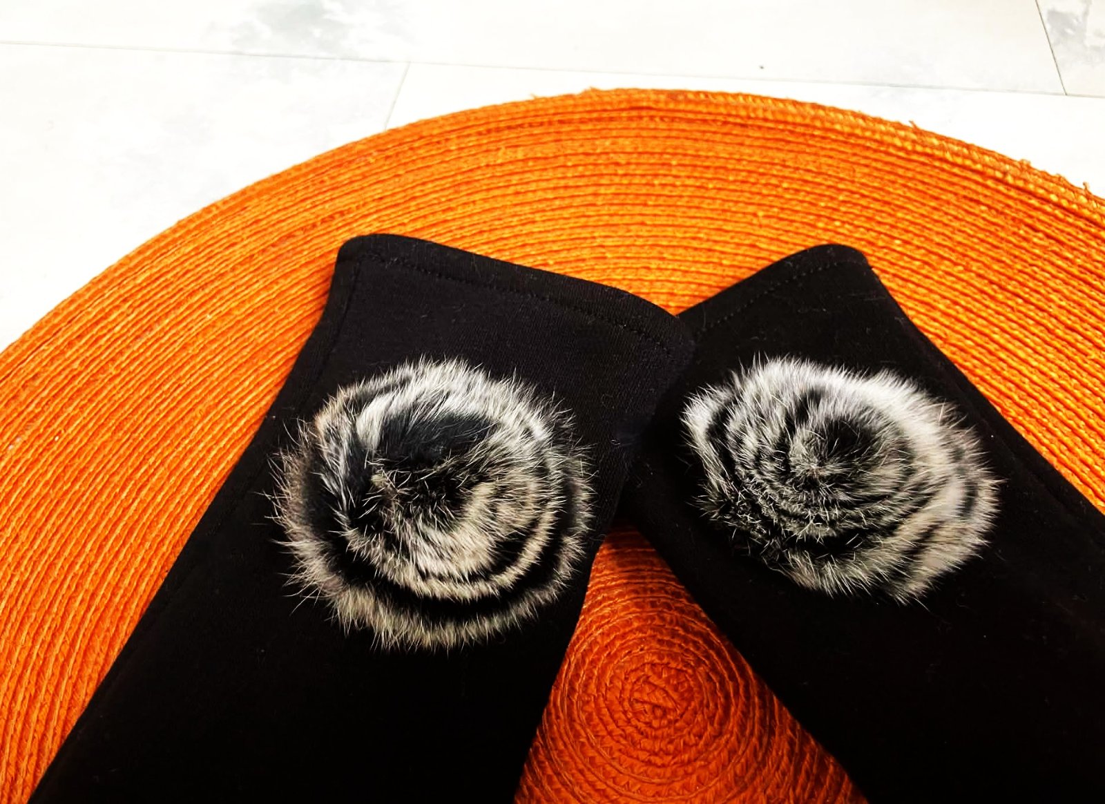 1 x oblečené luxusné rukavičky,poddajné,dnu zateplené,veľmi zaujímavé,ozdobené jemnou kožušinkou,na 2 prstoch vkusné saténové nášivky prispôsobené na dotykový telefón..top stav a kvalita - ako nové