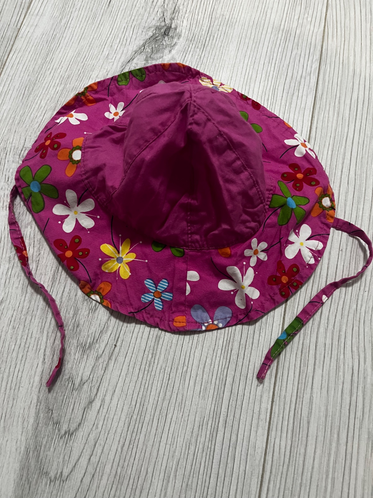 Predám ružový letný klobúčik so vzorom kvietkov na uvazovanie, veľkosť: 42