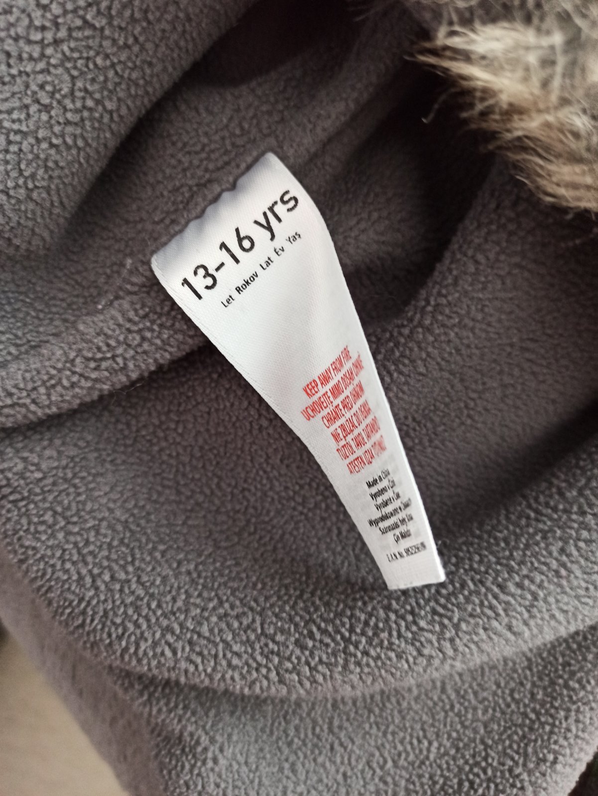 Bez poškodení. Veľkosť udana 8/12 rokov ale skôr na 4 sme my nosili. Teplá, nápis nepoškodený.