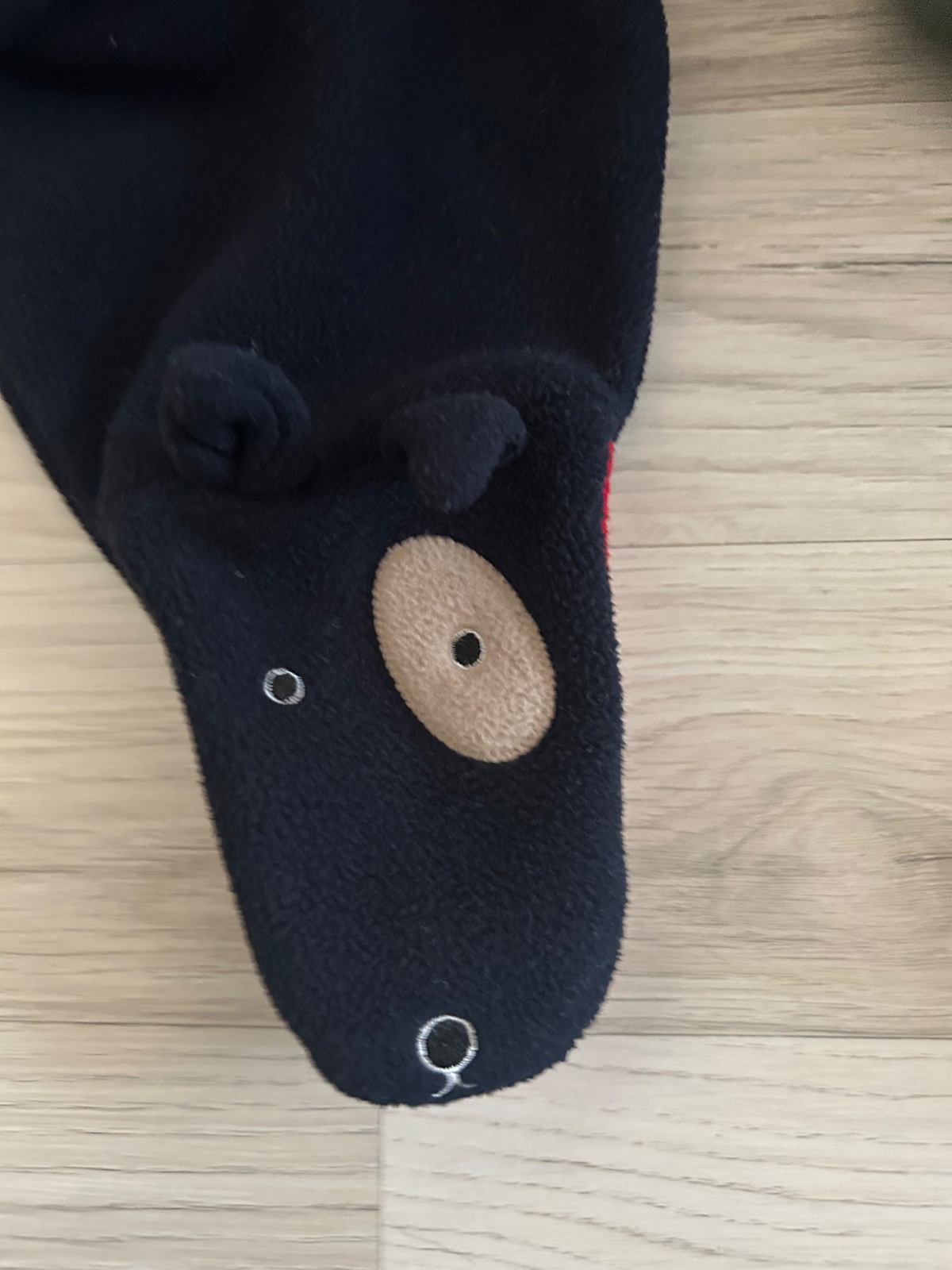 Čiapočka next z flaušu. Na konci je upravená do tváru dinka s otvorenou papuľkou. Možno ju využiť ako maňušku a zahrať si divadielko. Veľkosť na fotke.