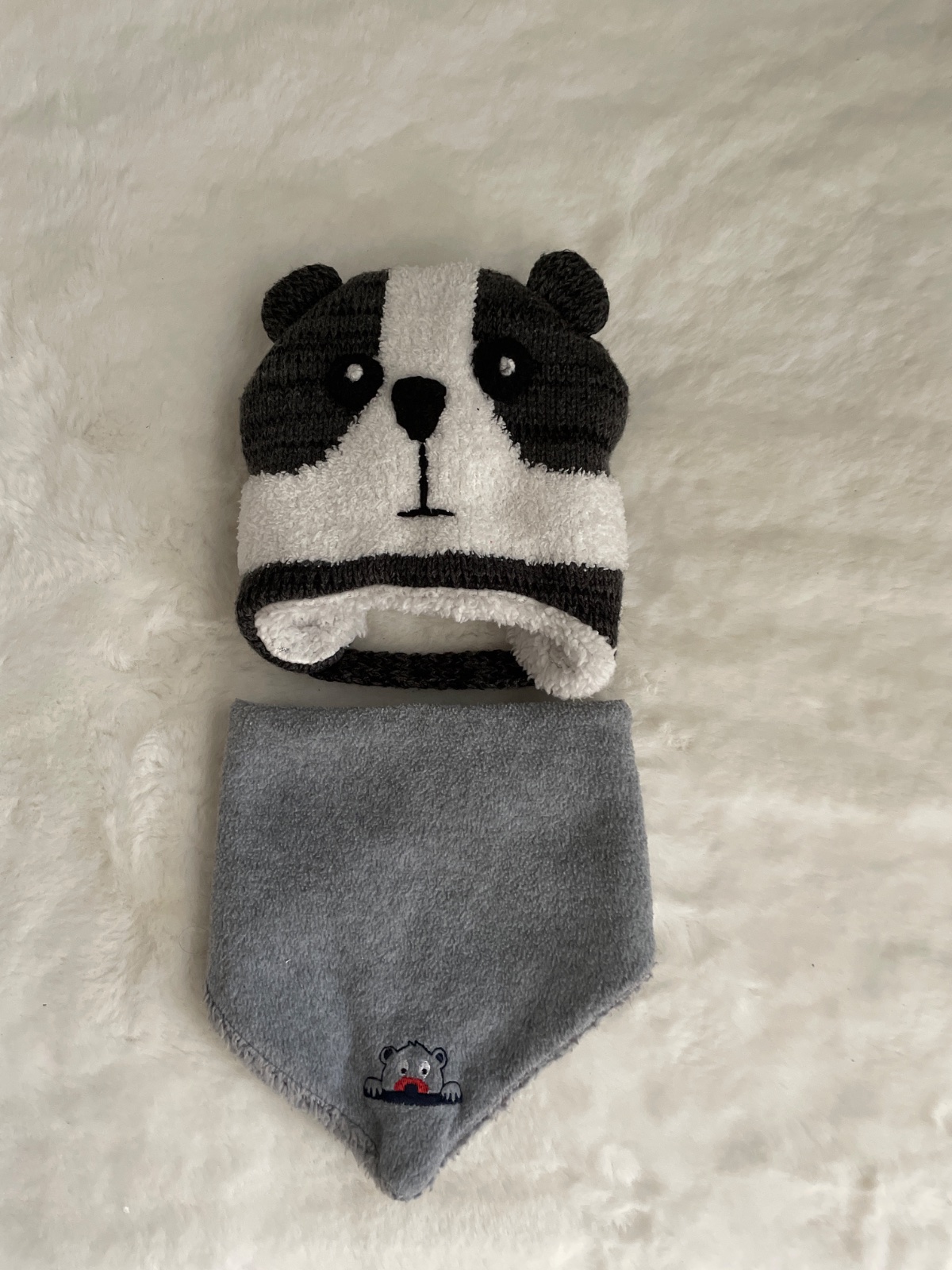 Čiapka akryl, označila som ju pod veľkosť 80, pretože aj keď je na štítku 86, nám bola malá. Zapínanie je na suchý zips, možno treba bude vymeniť, preto nízka cena. Nákrčník je spolu s čiapkou v cene.